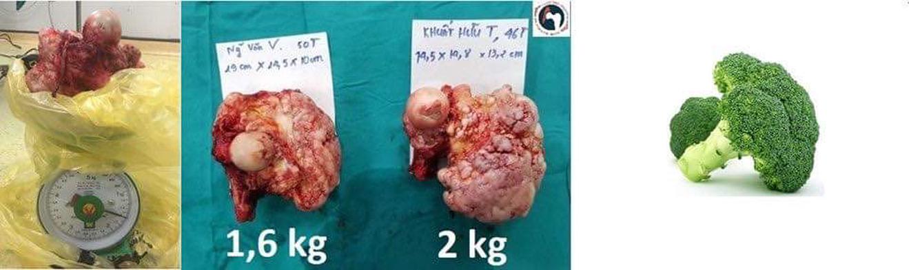 Khối u bệnh nhân V so sánh với kích thước khối u bệnh nhân T, kích thước tương tự như một cây súp lơ