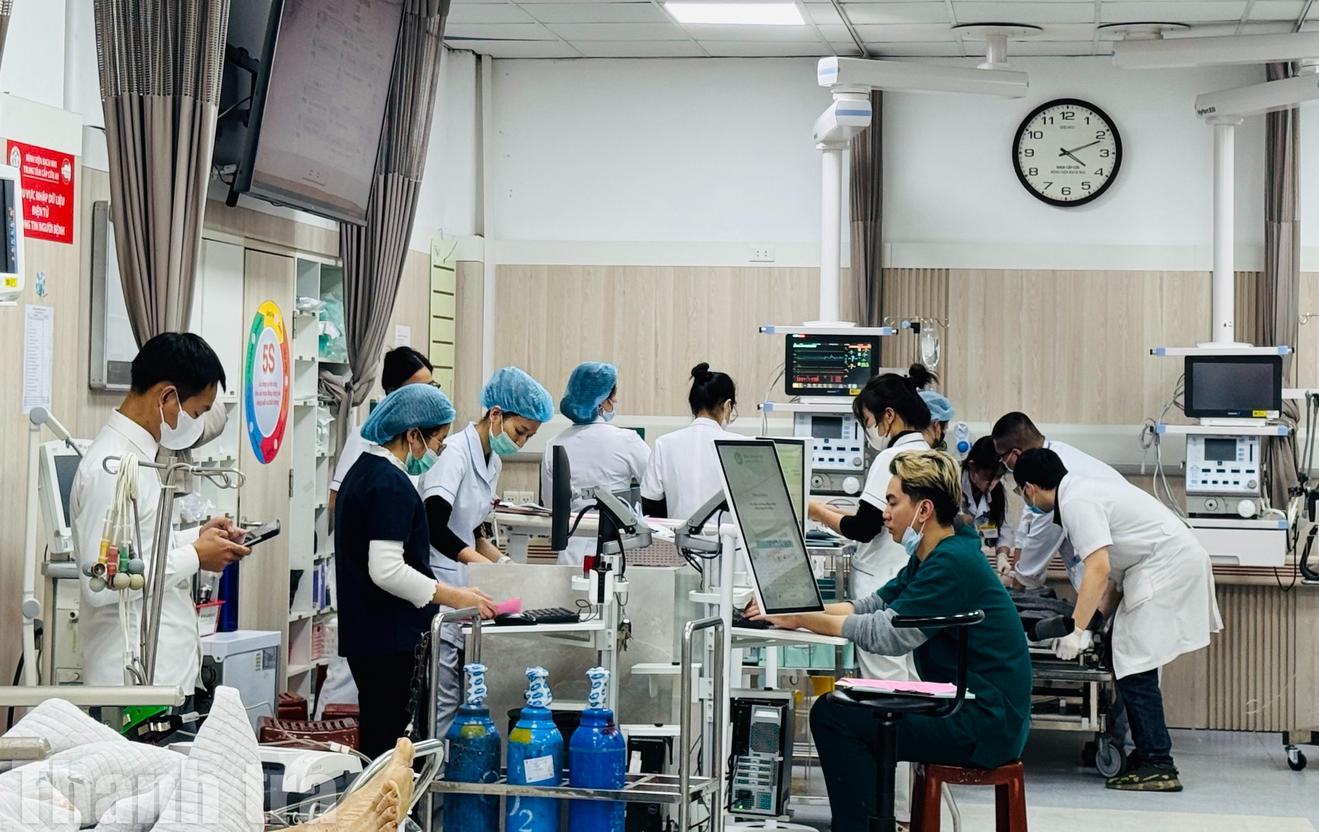 Những ngày cận Tết, bên trong Trung tâm Cấp cứu A9, Bệnh viện Bạch Mai, các y, bác sĩ vẫn miệt mài túc trực, nỗ lực giữ nhịp sống an toàn cho người bệnh. Ảnh: Thanh Lương