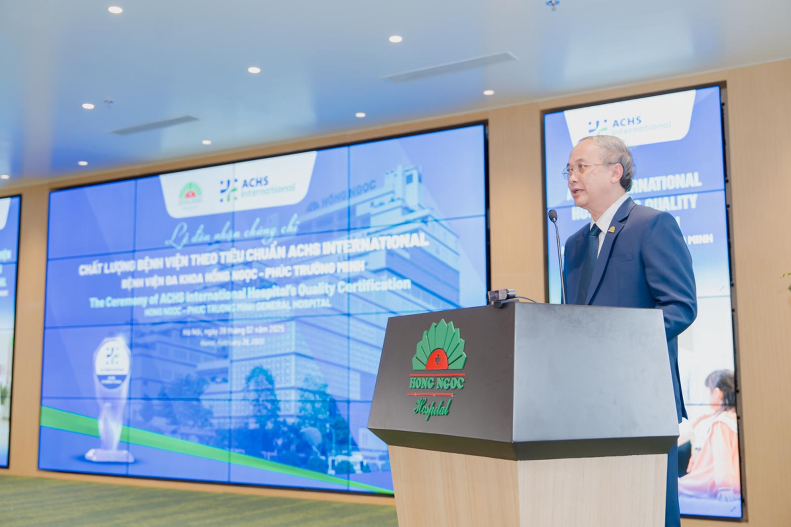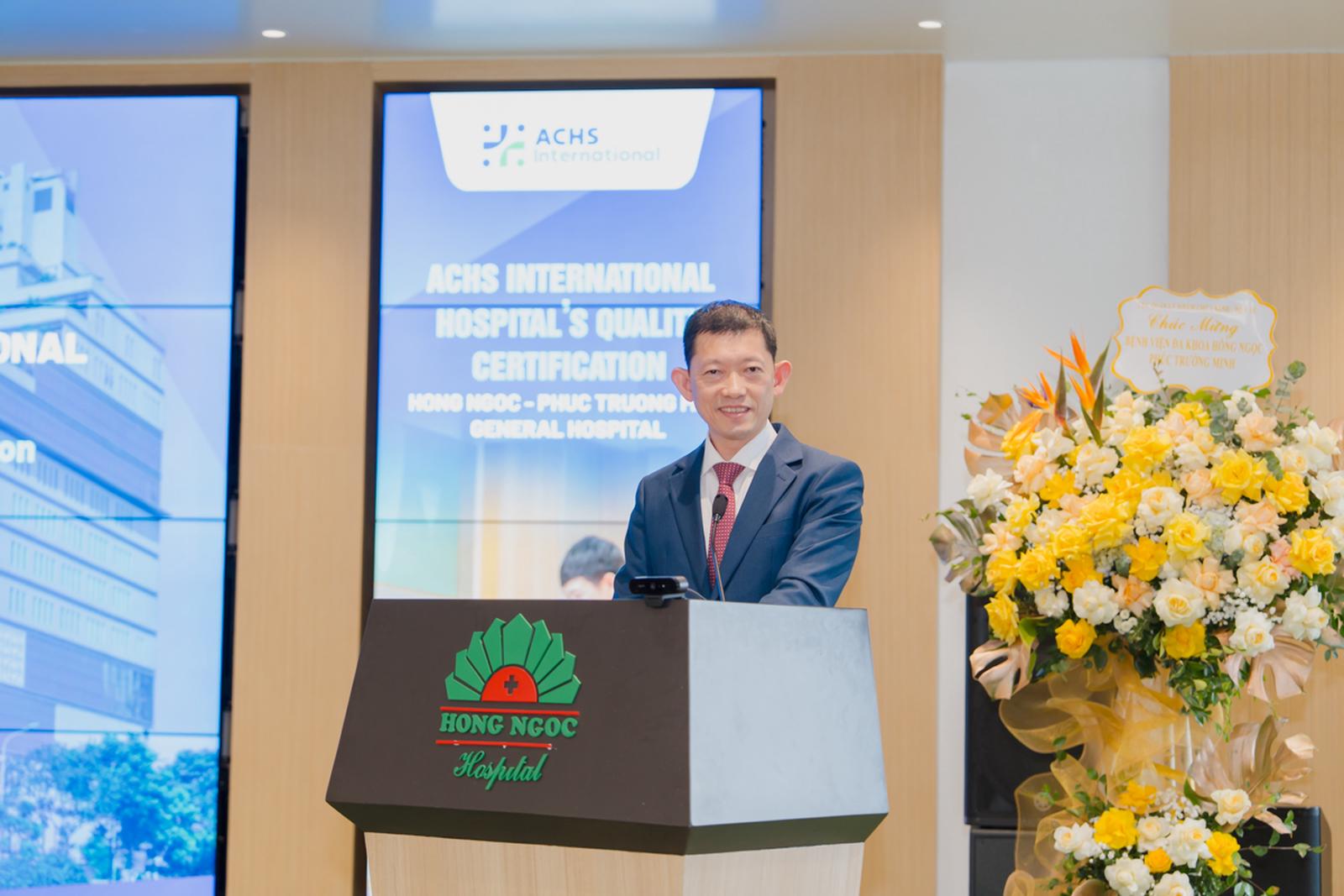 Phát biểu tại buổi lễ, PGS.TS.BS. Lê Văn Thạch – Giám đốc Bệnh viện Đa khoa Hồng Ngọc - Phúc Trường Minh chia sẻ: “Một trong những giá trị chúng tôi đặc biệt ấn tượng ở ACHSI và tìm thấy sự phù hợp với tôn chỉ của Bệnh viện Đa khoa Hồng Ngọc đó là không ngừng cải tiến. Với các kỳ đánh giá thường niên, chắc chắn mọi cam kết về chất lượng y tế sẽ luôn được duy trì ở mức cao nhất. Áp lực là có, nhưng đó là điều cần thiết để Hồng Ngọc tăng cường môi trường làm việc an toàn và thân thiện cho nhân viên y tế. Đặc biệt, khi triển khai chứng chỉ này, chúng tôi đặt người bệnh làm trung tâm, đảm bảo mang lại những quyền lợi tốt nhất và sự an toàn cao nhất trong quá trình điều trị”.