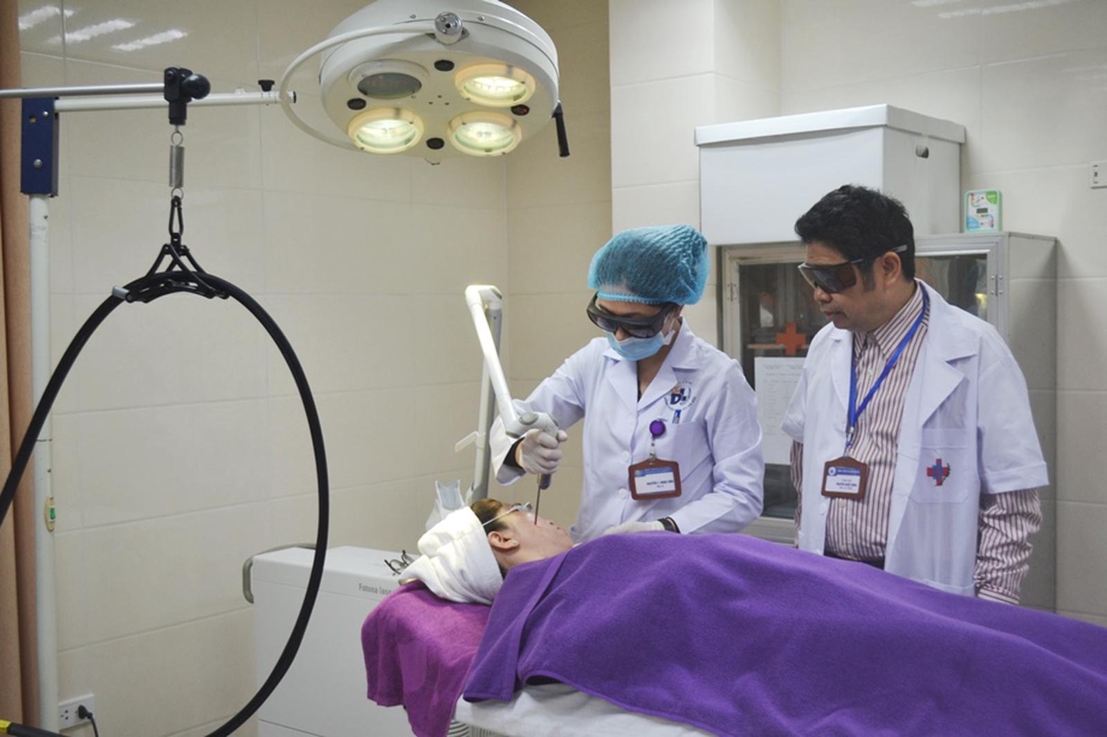 Bác sĩ da liễu laser cho bệnh nhân. Ảnh: LP