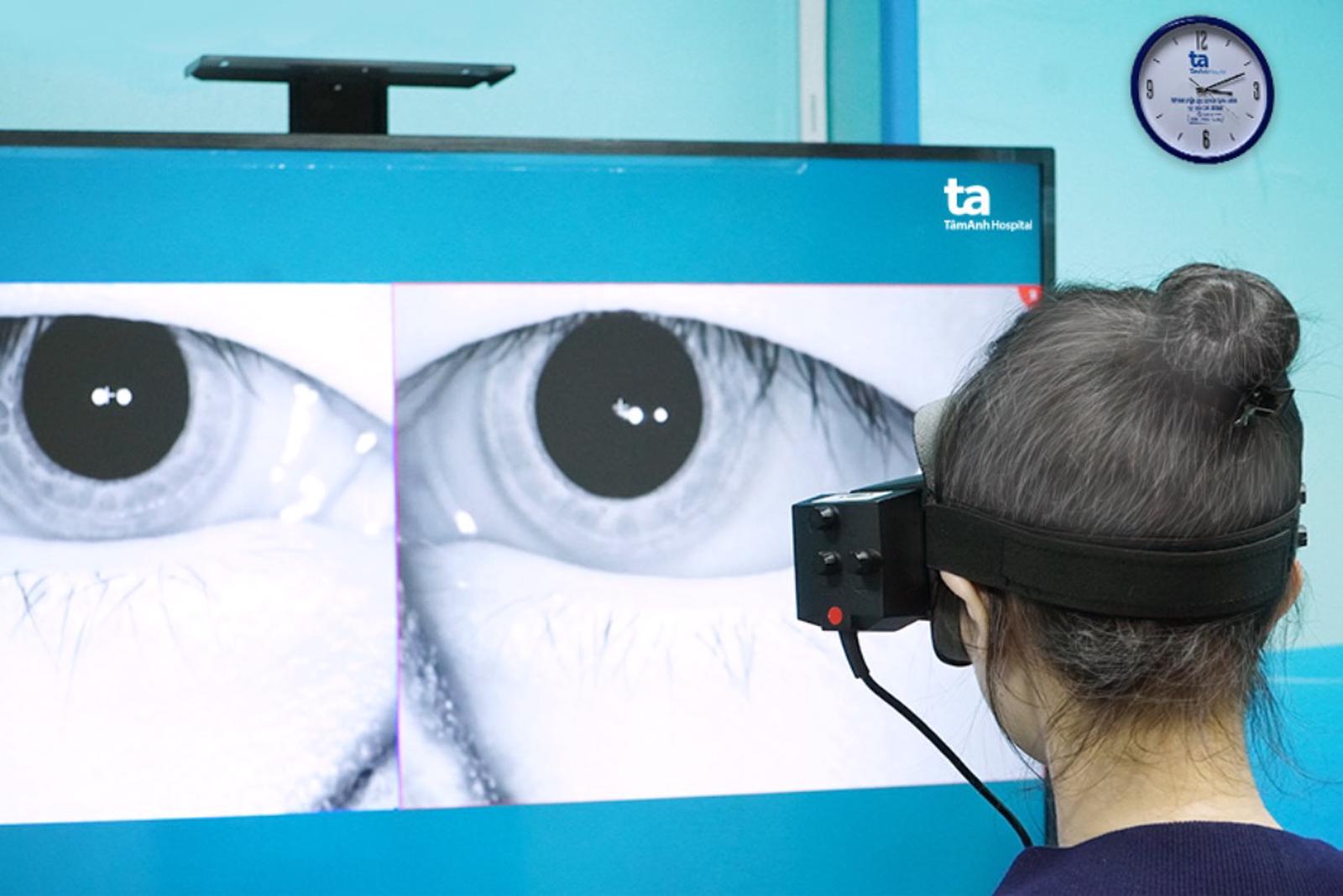 Người bệnh được kiểm tra tiền đình về vận động mắt. Ảnh: Bệnh viện Đa khoa Tâm Anh
