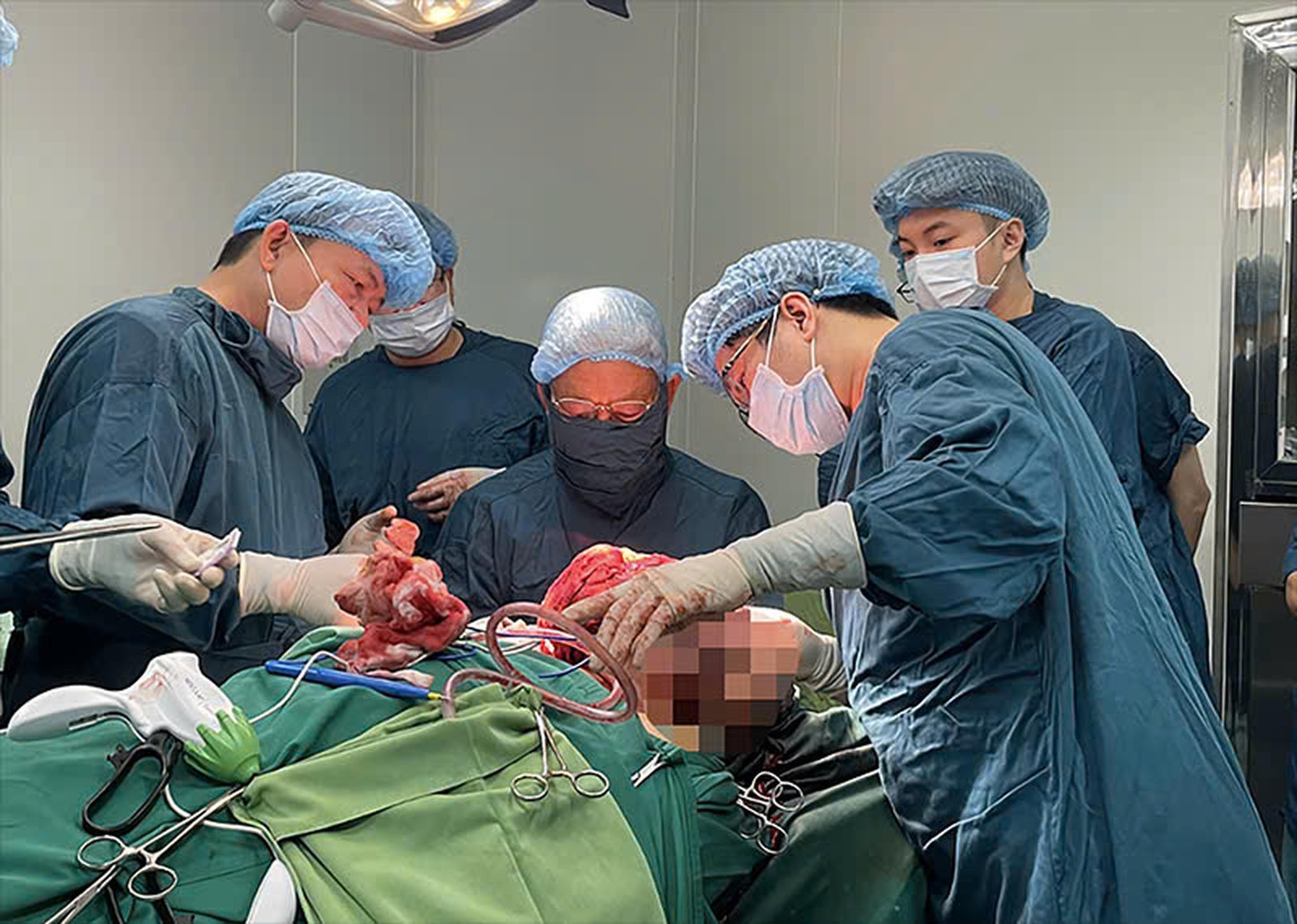Cuộc phẫu thuật cấp cứu kéo dài 8 giờ được chia làm 3 thì (thắt mạch máu; cắt khối u khổng lồ, kích thước 15*9cm; tạo hình vùng má thái dương phải), sử dụng 49 đơn vị máu trước, trong và sau mổ. Ca bệnh khó, tiên lượng nặng đã được phẫu thuật cấp cứu thành công. Hiện tại, bệnh nhân đi lại bình thường, ăn ngủ được, vết mổ liền thương ổn định, phục hồi dần.