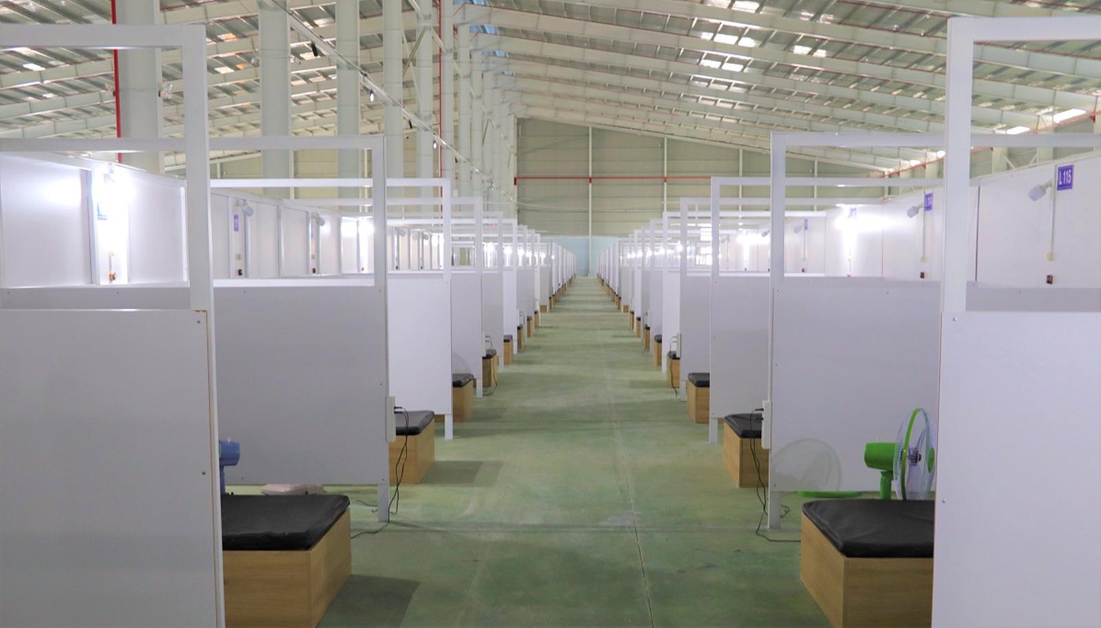 Toàn bộ hệ thống cơ sở vật chất trưng dụng làm bệnh viện được tài trợ bởi Công ty TNHH Hoàng Hùng. Theo đó, cùng với việc cho mượn khuôn viên các nhà xưởng của mình, Công ty TNHH Hoàng Hùng còn phối hợp với một số doanh nghiệp trên địa bàn tỉnh tiến hành trang bị đầy đủ cơ sở vật chất để bệnh viên có thể vận hành tốt, đáp ứng nhu cầu cách ly điều trị bệnh nhân mắc Covid-19 trên địa bàn.