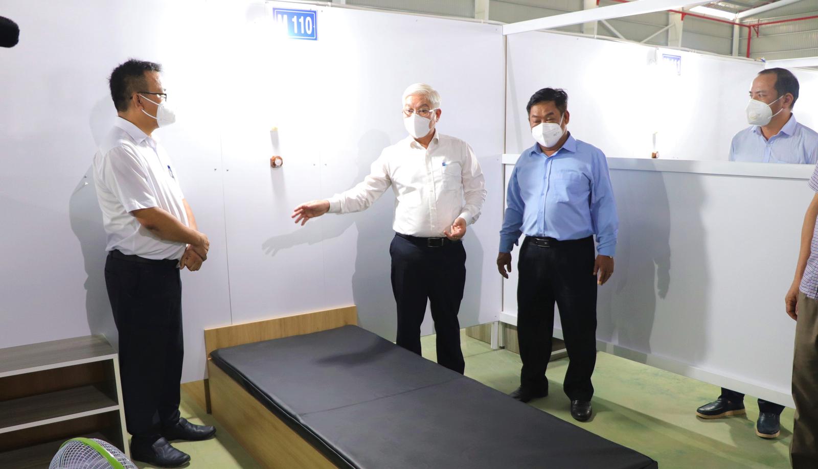 Bí thư Tỉnh ủy Bình Dương Nguyễn Văn Lợi yêu cầu Ban Giám đốc Bệnh viện Dã chiến số 4 khẩn trương triển khai tiếp nhận bệnh nhân trong 2 ngày tới. Ảnh: BTC