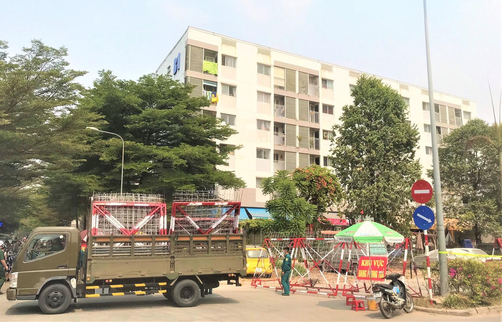 Sáng 6/2/2021, lực lượng quân sự, công an thuộc phường Vĩnh Phú (TP Thuận An, Bình Dương) đã tiến hành phong tỏa khu vực chung cư Ehome 4 thuộc khu phố Hòa Long nêu trên để cơ quan chức năng tiến hành truy vết F1, F2.
