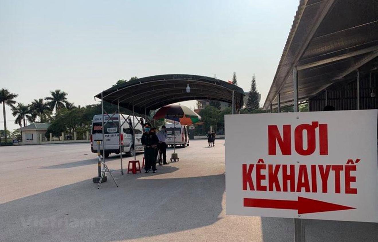 Chốt kiểm dịch và khai báo y tế tại thành phố Móng Cái, tỉnh Quảng Ninh. (Ảnh: Thuỳ Giang/Vietnam+)