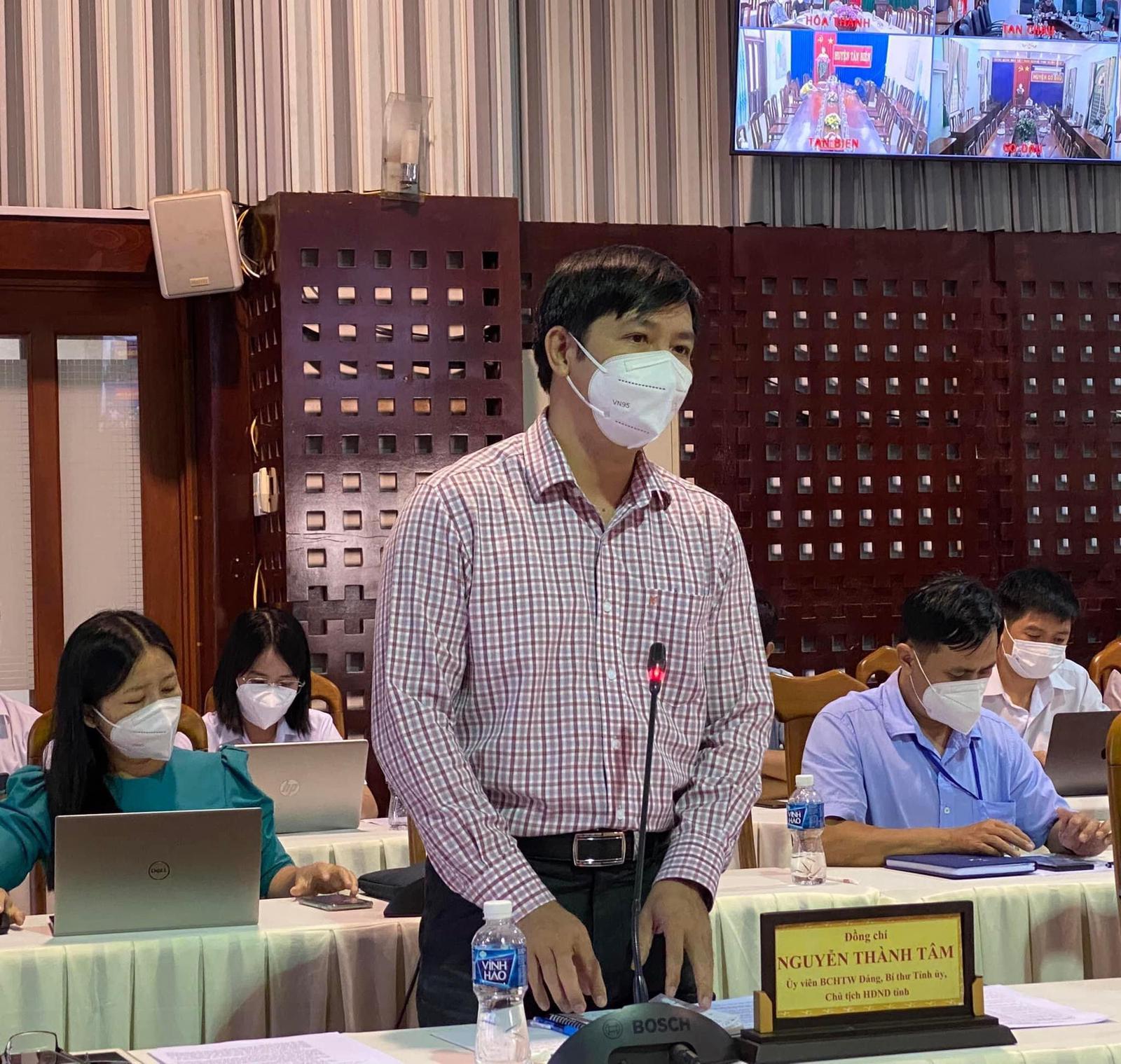 Tại buổi làm việc, Bí thư Tỉnh ủy Tây Ninh Nguyễn Thành Tâm cam kết sẽ rà soát để thực hiện các đề xuất, góp ý của Đoàn Công tác, cố gắng huy động tối đa khả năng của tỉnh để thực hiện tiêm chủng cho đối tượng người cao tuổi, điều trị bệnh nhân Covid-19 tại các cơ sở y tế cũng như quản lý chăm sóc F0 tại nhà…