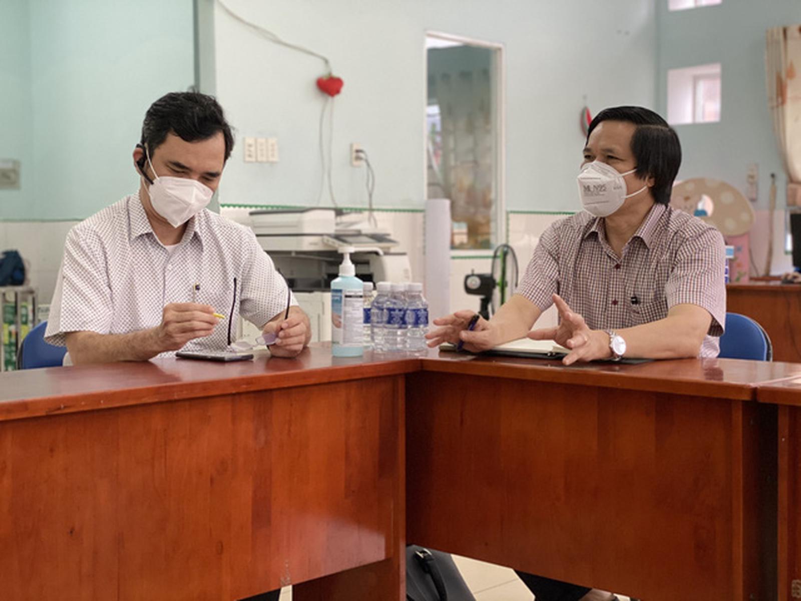 TS Cao Hưng Thái (phải) - Phó Cục trưởng Cục Quản lý Khám chữa bệnh (Bộ Y tế) chỉ ra những vẫn đề còn tồn tại tại các bệnh viện dã chiến. Ảnh: Bộ Y tế