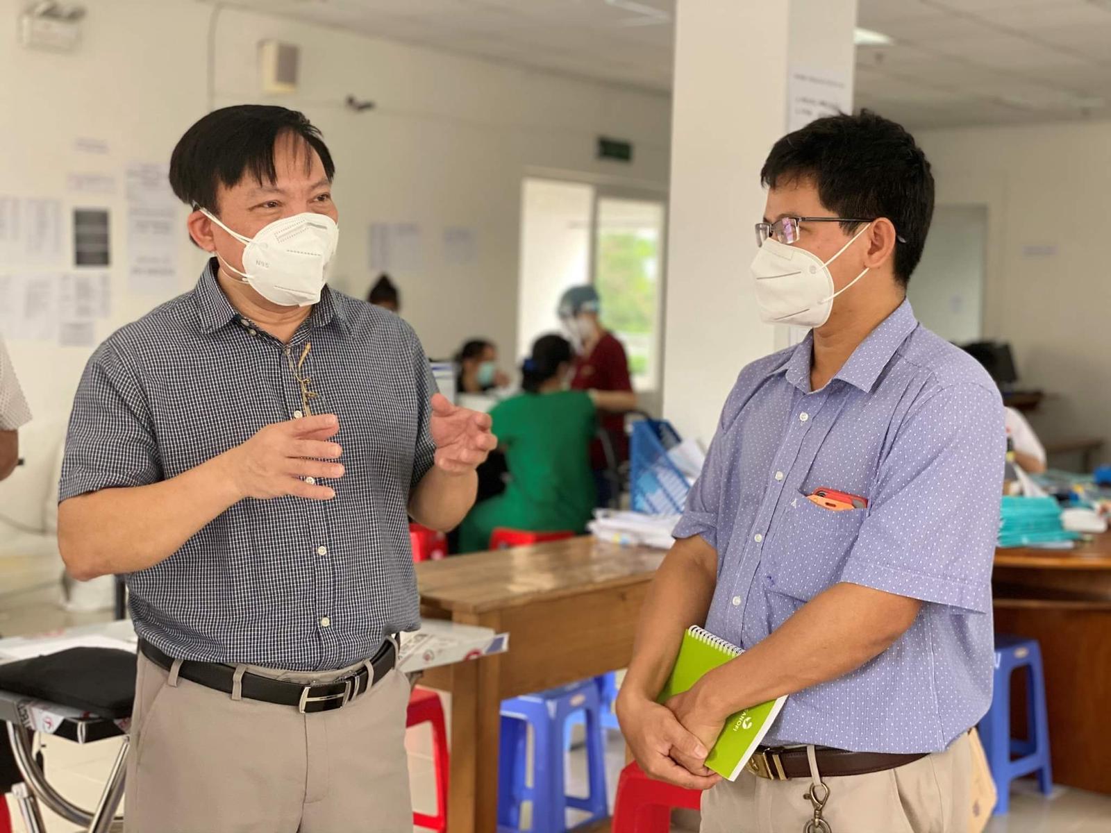 TS Hoàng Đình Cảnh (trái) - Phó Cục trưởng Cục Phòng, chống HIV/AIDS (Bộ Y tế) kiểm tra công tác thu dung và điều trị tại một số bệnh viện dã chiến. Ảnh: Bộ Y tế