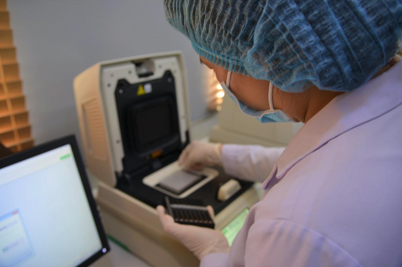 Mỗi ngày xe labo xét nghiệm di động có thể làm khoảng 400 mẫu đơn (tương đương khoảng 2.000 lượt người) và cho kết quả trong vòng 4 giờ đồng hồ mà không cần phải chuyển lên đơn vị khác. Ảnh: CT