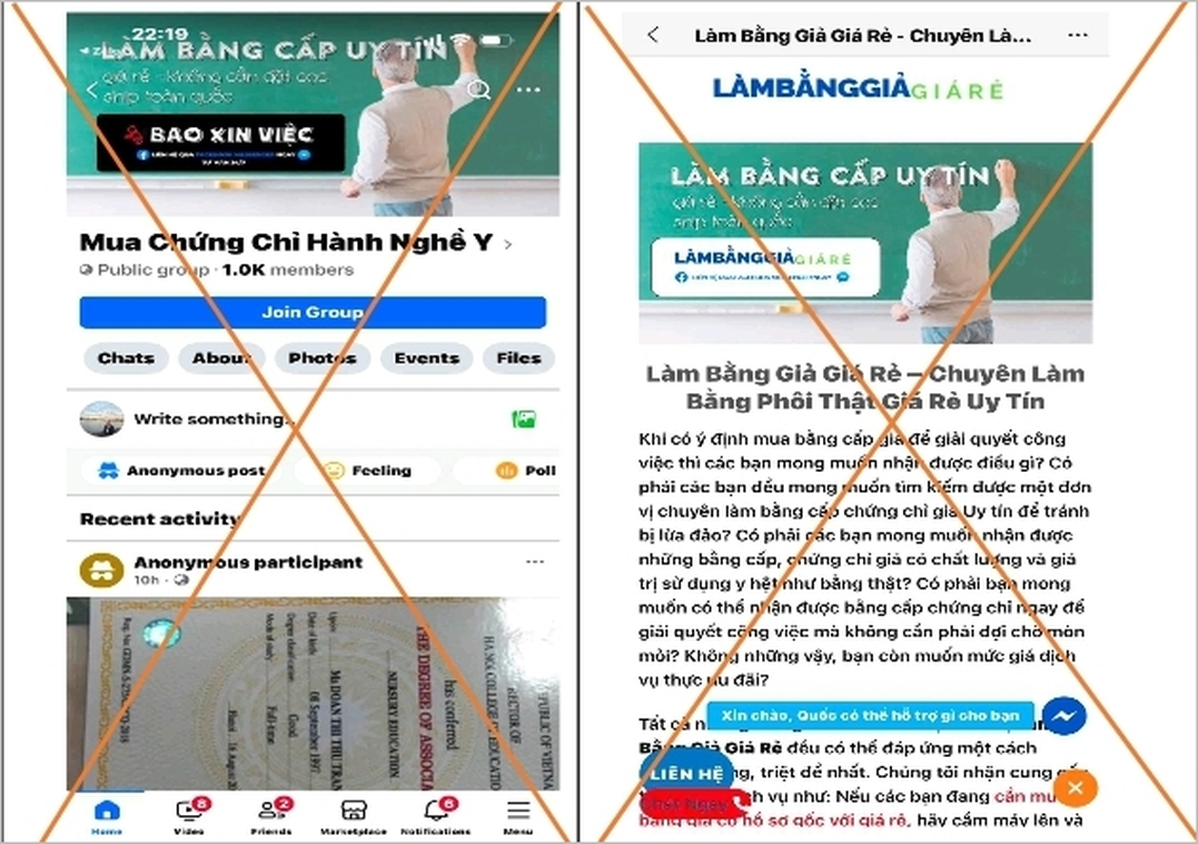 Sở Y tế cho biết, hiện nay trên không gian mạng xuất hiện nhiều trang web và hội nhóm trên mạng xã hội quảng cáo công khai các dịch vụ làm giả chứng chỉ hành nghề, giấy phép hành nghề.