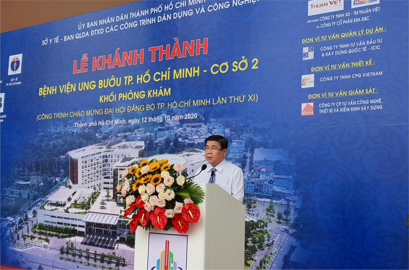 Chủ tịch UBND TP Nguyễn Thành Phong tuyên dương ngành Y tế TP trong những năm qua đã khẳng định năng lực, trình độ ngang tầm với các nước trong khu vực. BV Ung bướu cơ sở 2 đưa vào hoạt động là một trong những chủ trương quan trọng của TP trong việc nâng cao đời sống và sức khoẻ của người dân.