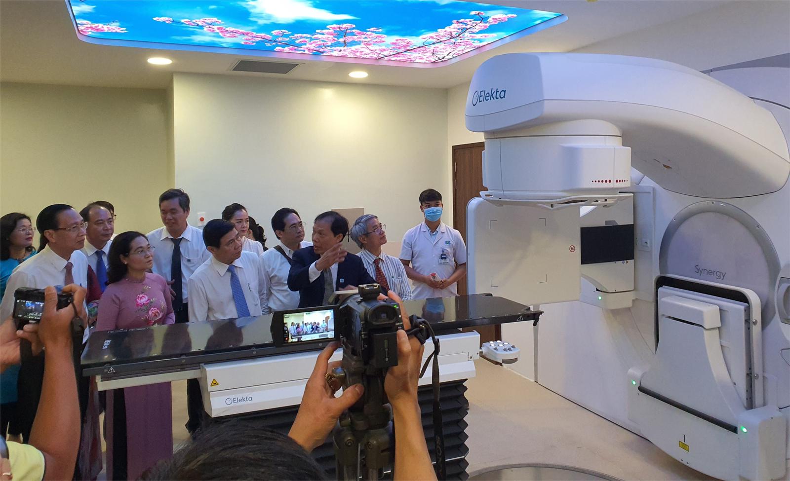 Chủ tịch UBND TP Nguyễn Thành Phong đánh giá cao BV Ung bướu cơ sở 2 được đưa vào hoạt động. Ảnh: Đinh Mười