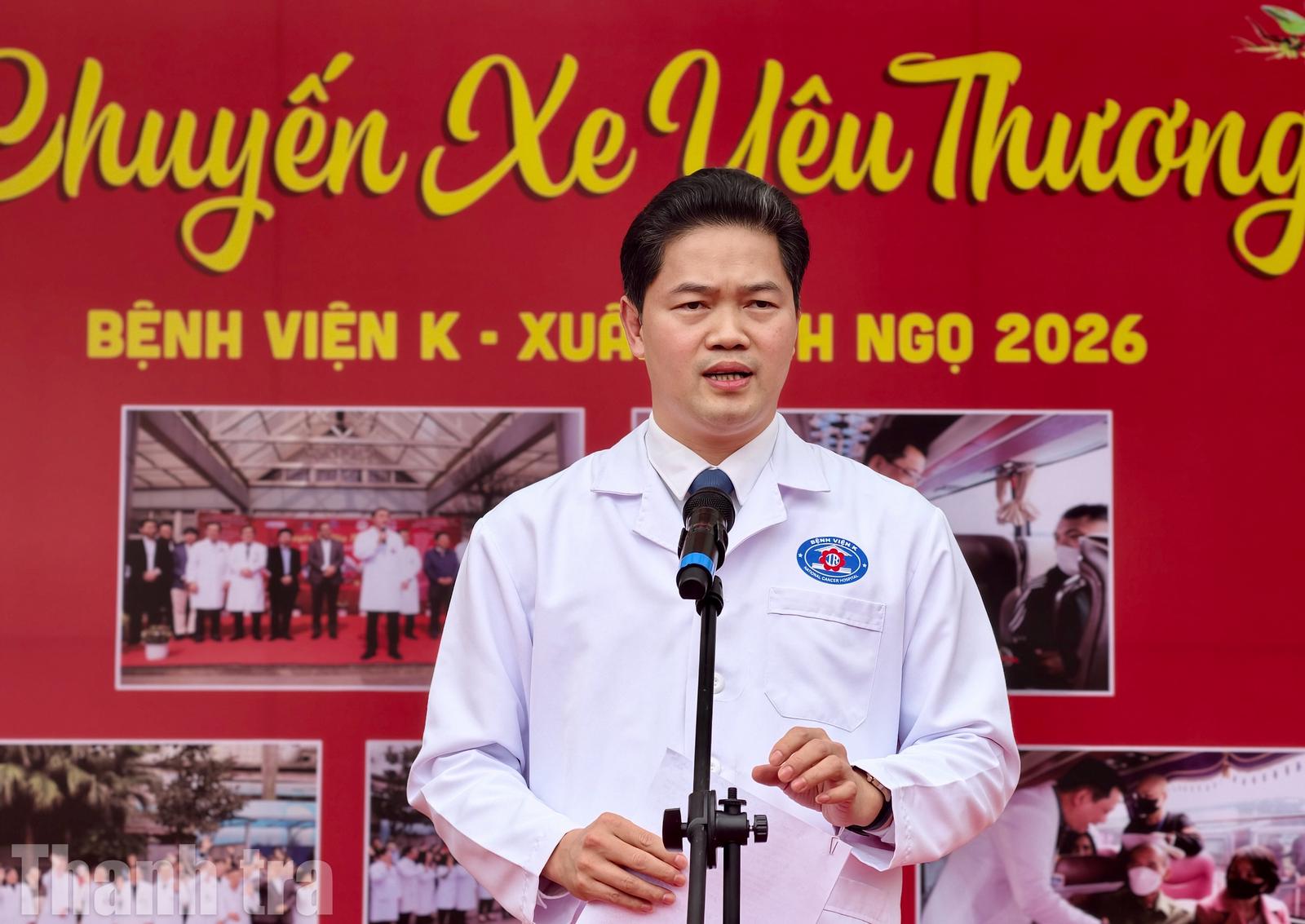 Thứ trưởng Thường trực Bộ Y tế bày tỏ xúc động khi được tham dự một hoạt động ý nghĩa, giàu tính nhân văn trong những ngày cuối năm. Ông gửi lời chúc mừng năm mới tới toàn thể người bệnh, người nhà người bệnh cùng cán bộ, nhân viên y tế Bệnh viện K; chúc mọi người sức khỏe, bình an, giữ vững tinh thần lạc quan để đón thêm nhiều mùa Xuân mới.