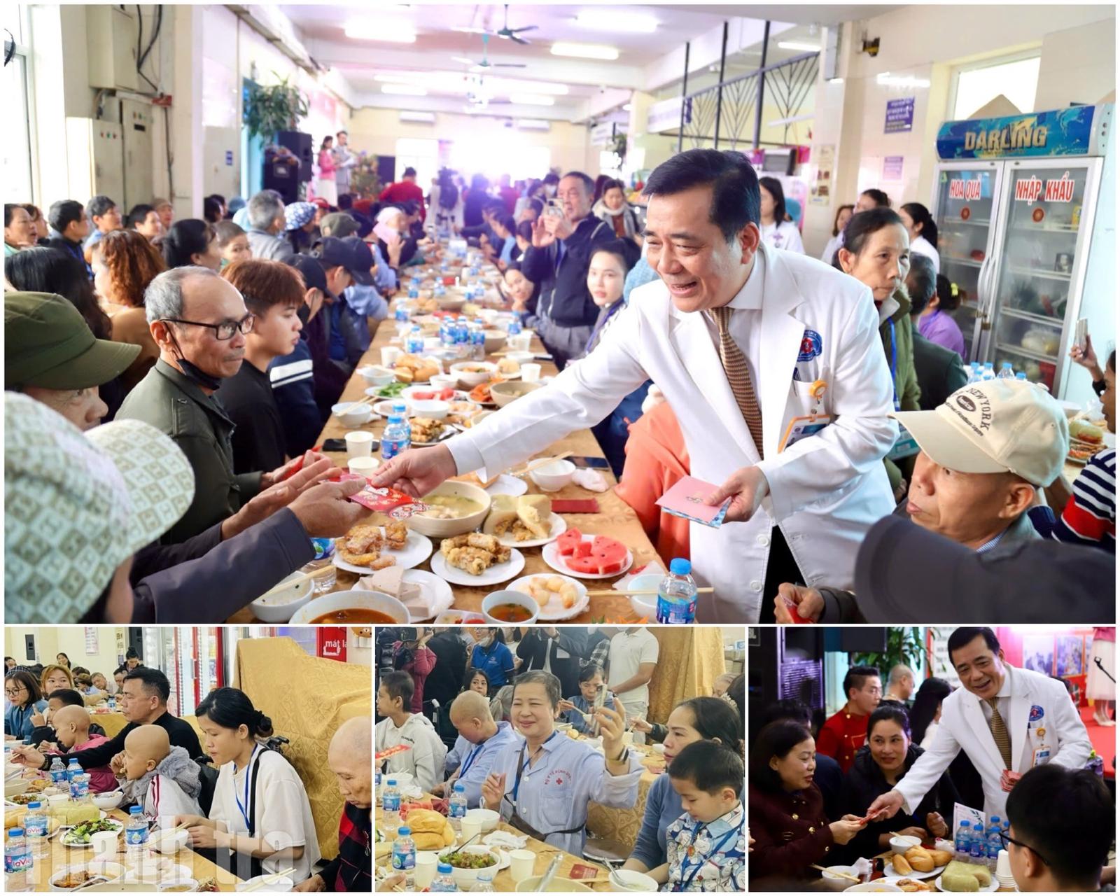 Trước đó, sáng cùng ngày, hơn 1.200 người bệnh đã xúc động tham dự chương trình Cơm tất niên tại bệnh viện. Hơn 200 mâm cơm ấm cúng với các món ăn truyền thống như bánh chưng, giò, nem… được chuẩn bị chu đáo, góp phần xua tan cái lạnh cuối đông và những lo âu của quá trình điều trị kéo dài.