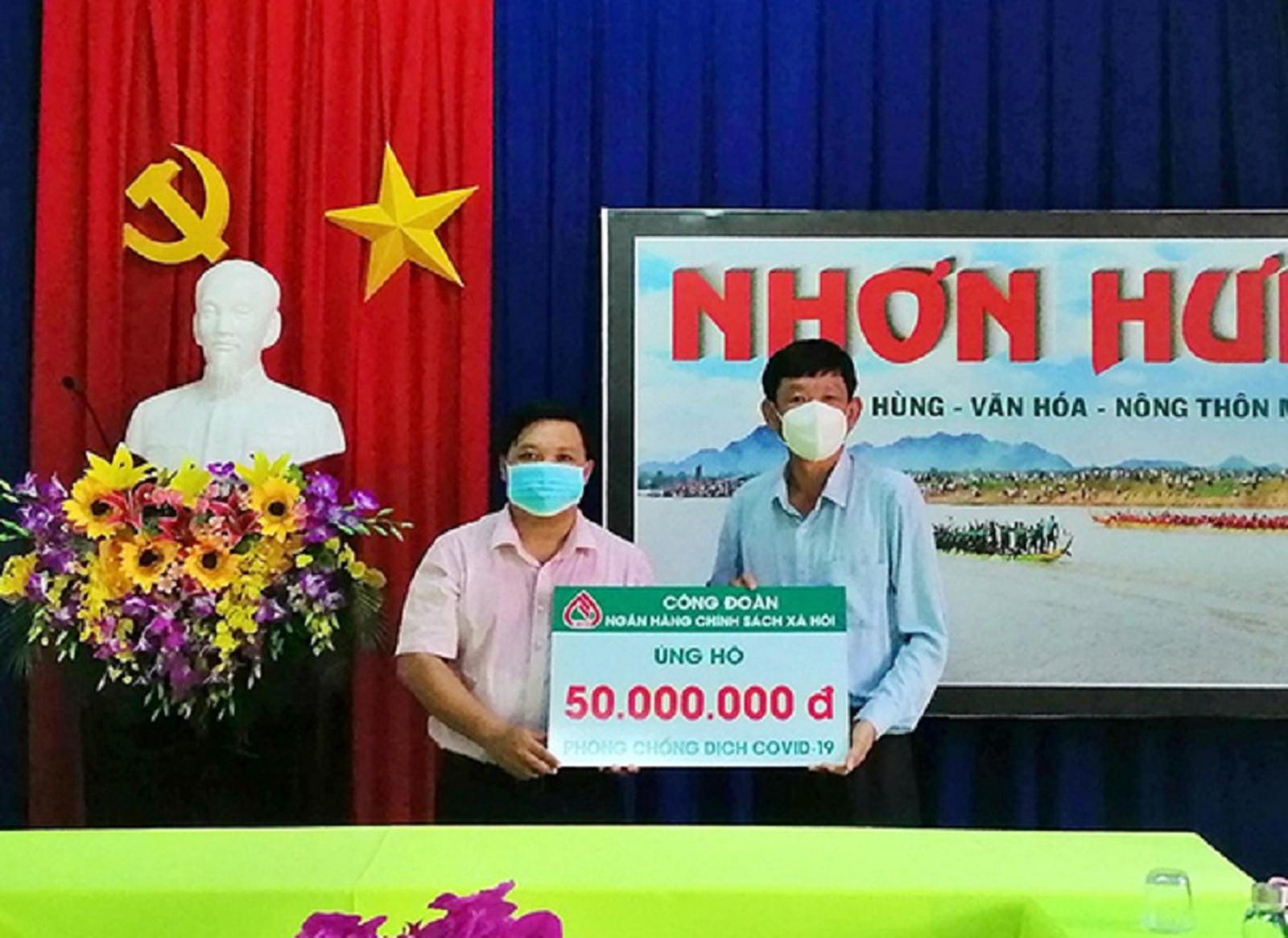 Công đoàn NHCSXH hỗ trợ 50 triệu đồng các cán bộ, chiến sĩ tại các chốt biên giới đang làm nhiệm vụ phòng, chống dịch COVID-19 ở huyện Tịnh Biên (An Giang); 150 triệu đồng cho các đơn vị tham gia phòng, chống dịch COVID-19 trên địa bàn tỉnh Bình Thuận…