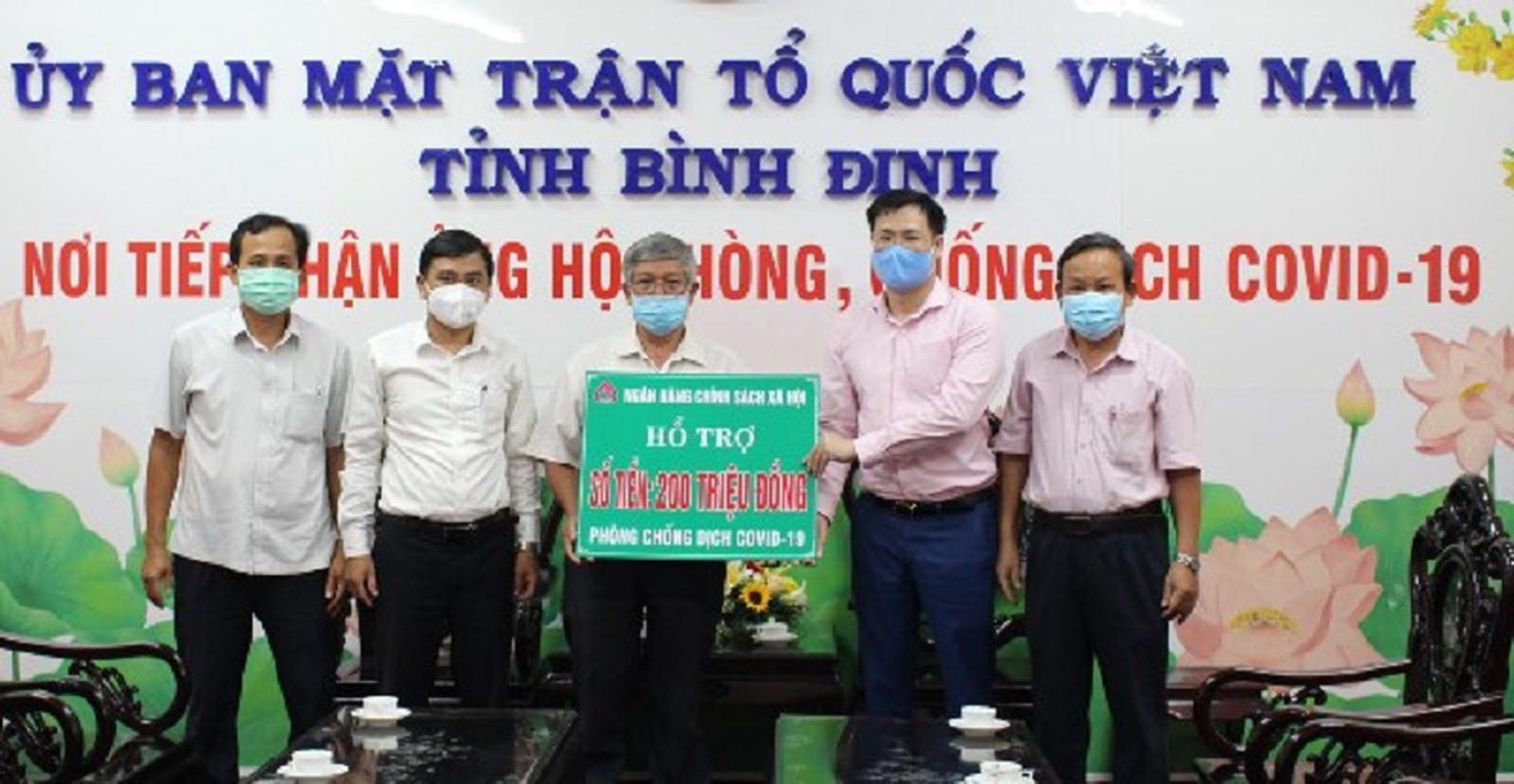 NHCSXH trao 200 triệu đồng cho Uỷ ban MTTQ tỉnh Bình Định để hỗ trợ cho các đơn vị tham gia phòng, chống dịch COVID-19