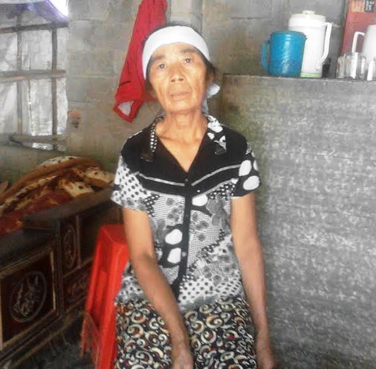 Bà Phạm Thị Liên đau xót trước sự ra đi đột ngột của chồng. Ảnh: Yến Thanh