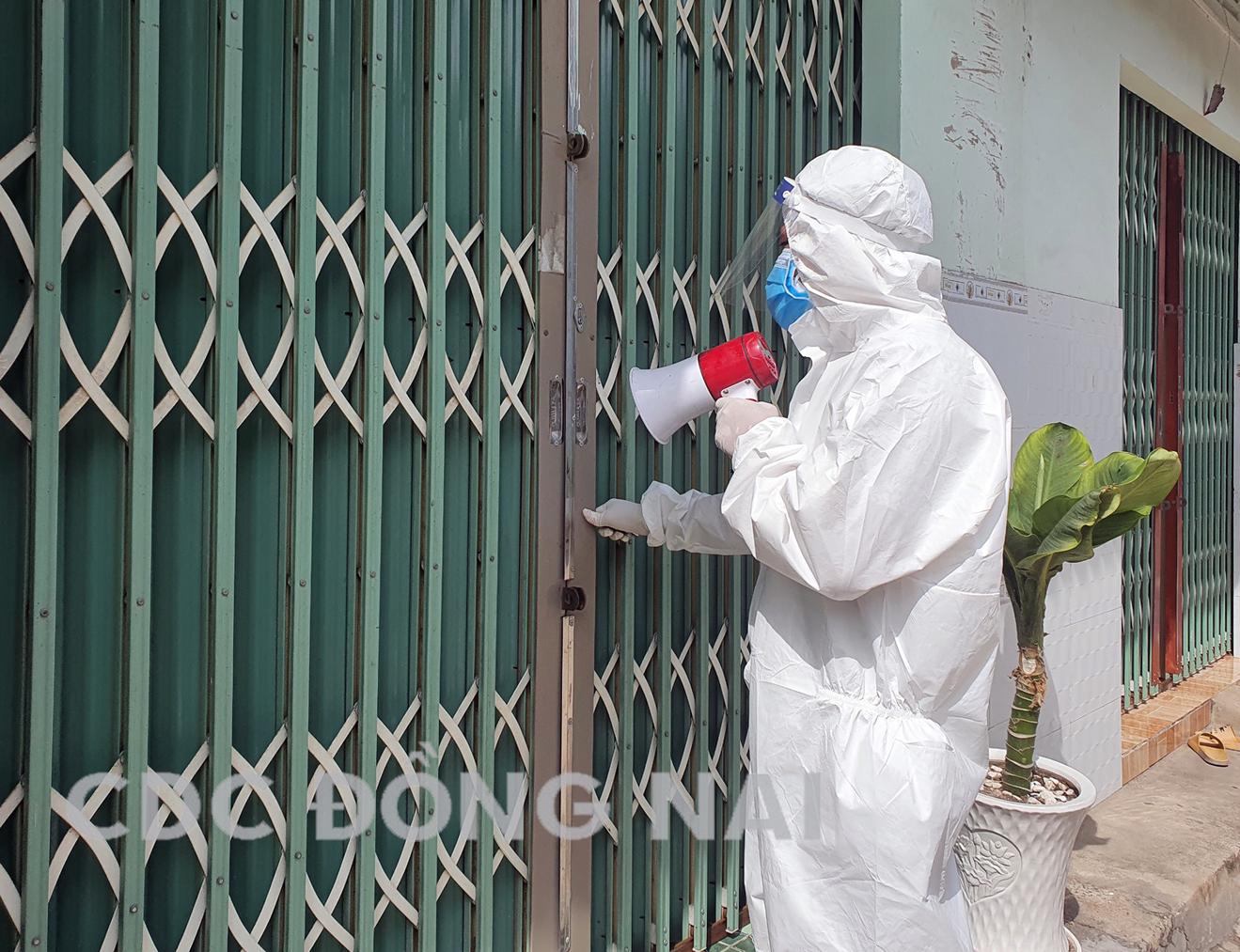 Nhân viên y tế Trung tâm Y tế huyện Vĩnh Cửu đến từng nhà gọi người dân lấy mẫu xét nghiệm tại xã Thiện Tân. Ảnh: CDC Đồng Nai