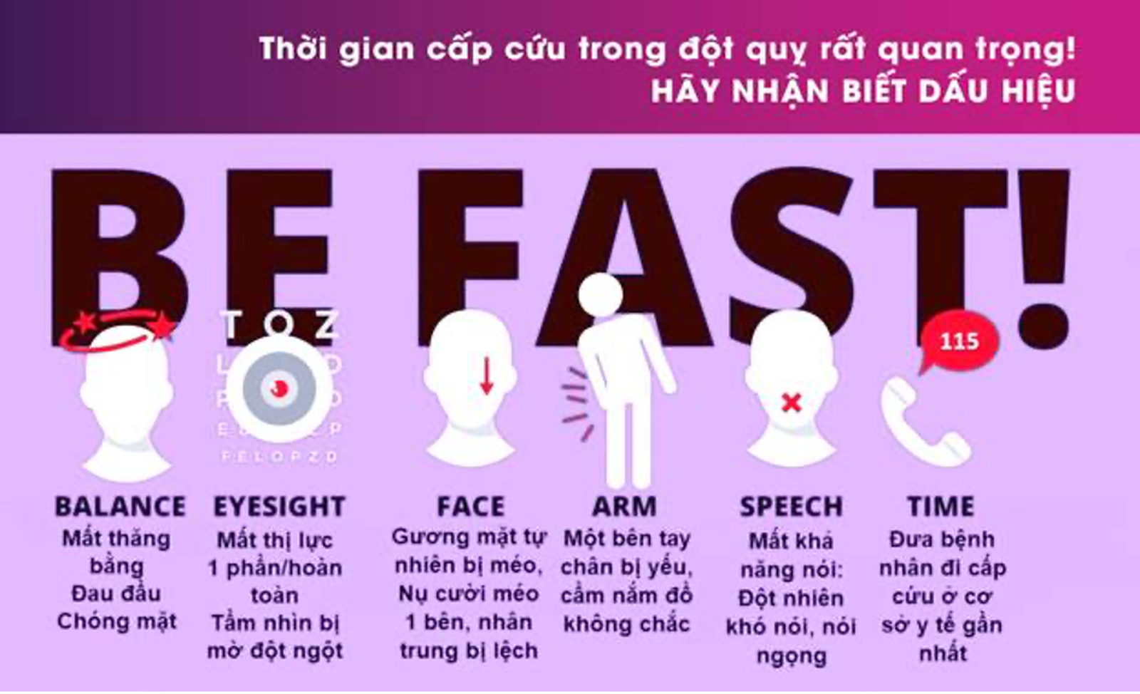 Người dân có thể dùng quy tắc BE FAST để nhận biết sớm đột quỵ