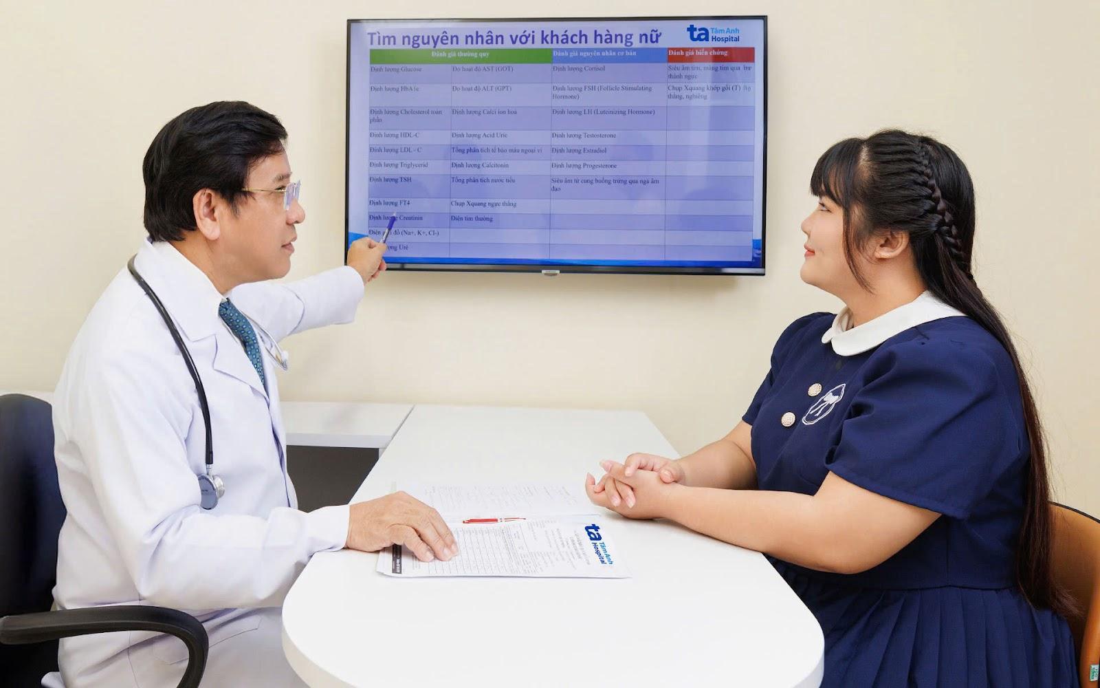 TS.BS Lâm Văn Hoàng, Giám đốc Trung tâm Giảm cân Tâm Anh đang phân tích nguyên nhân dẫn đến thừa cân, béo phì cho khách hàng. Ảnh: BVĐK Tâm Anh