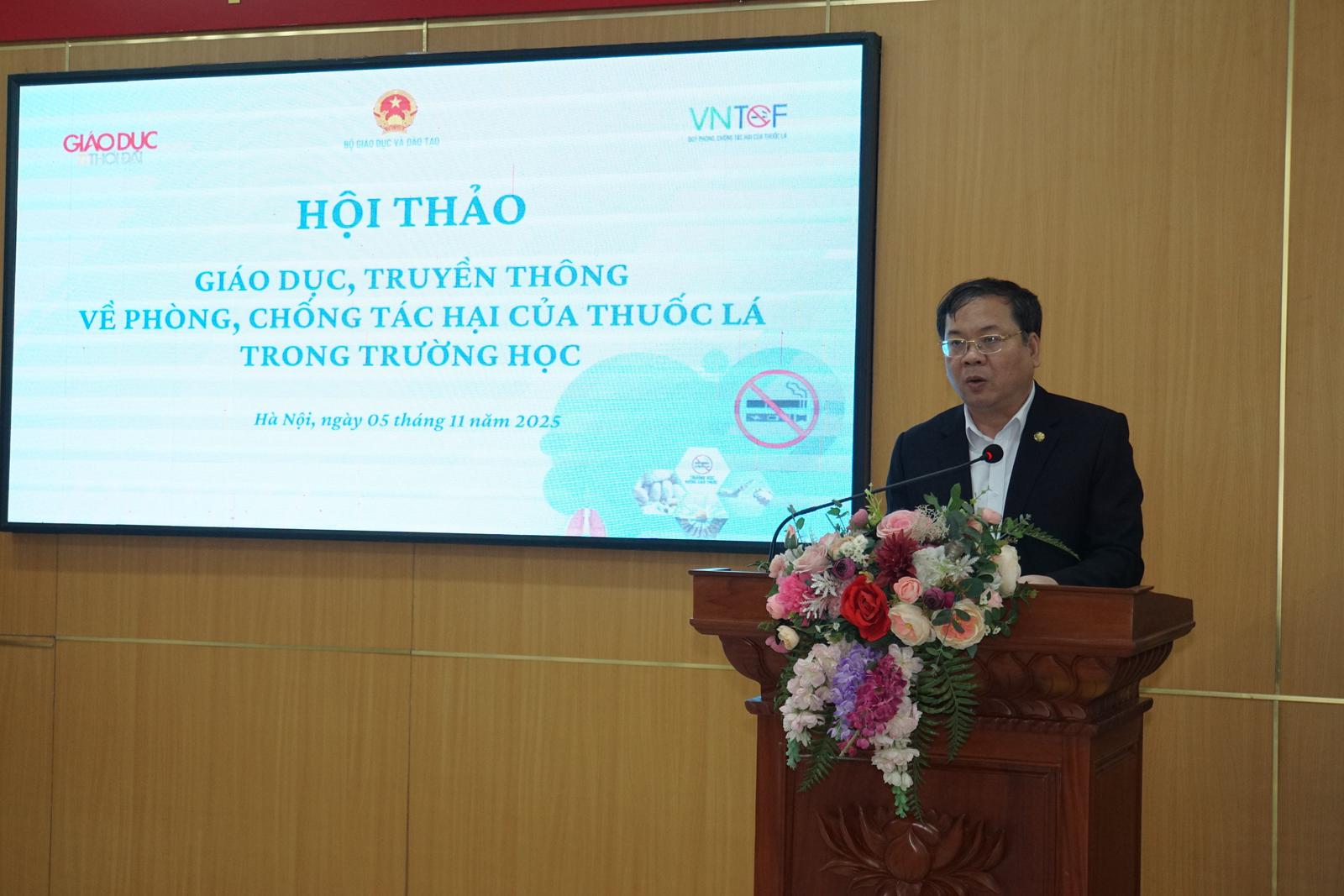 Phát biểu khai mạc hội thảo, ông Triệu Ngọc Lâm, Tổng Biên tập Báo Giáo dục và Thời đại nhấn mạnh, ngành giáo dục giữ một vị trí đặc biệt trong cuộc chiến phòng, chống tác hại của thuốc lá, không chỉ là nơi trang bị tri thức, nhà trường còn là môi trường hình thành nhân cách và hành vi của con người.