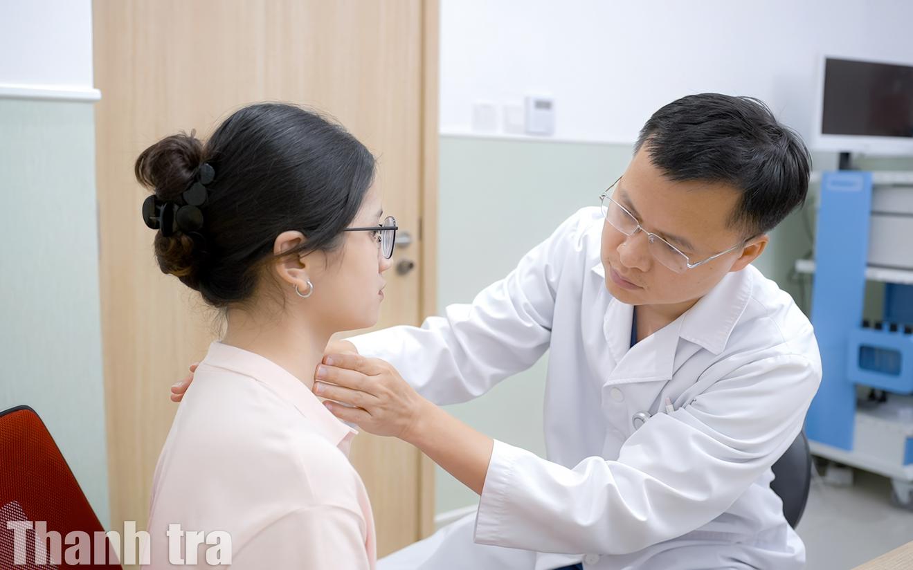 Bác sĩ thăm khám bệnh nhân tuyến giáp. Ảnh: Lê Phượng