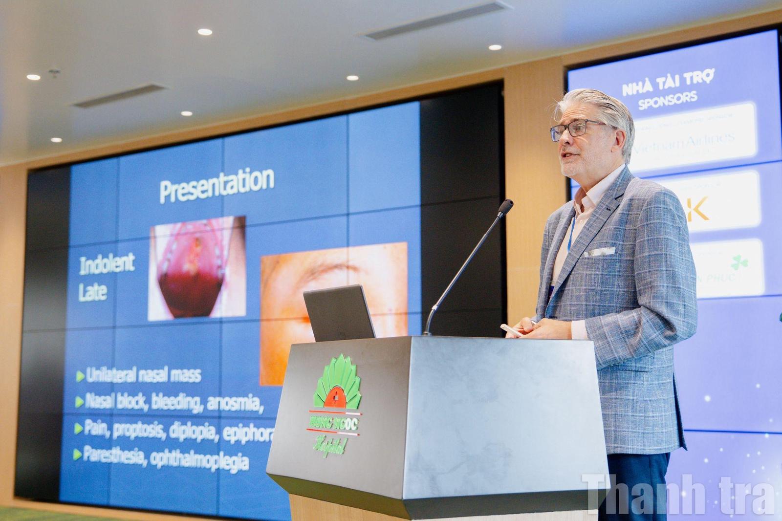 Chia sẻ tại hội nghị, các chuyên gia quốc tế và Việt Nam đã tập trung trao đổi về những thách thức trong điều trị khối u ác tính tại mũi xoang, tuyến mang tai và tuyến giáp - những vị trí đòi hỏi kỹ thuật phẫu thuật tinh vi và hiểu biết sâu về giải phẫu; những điều cần cân nhắc khi đối mặt với ung thư mũi xoang…
