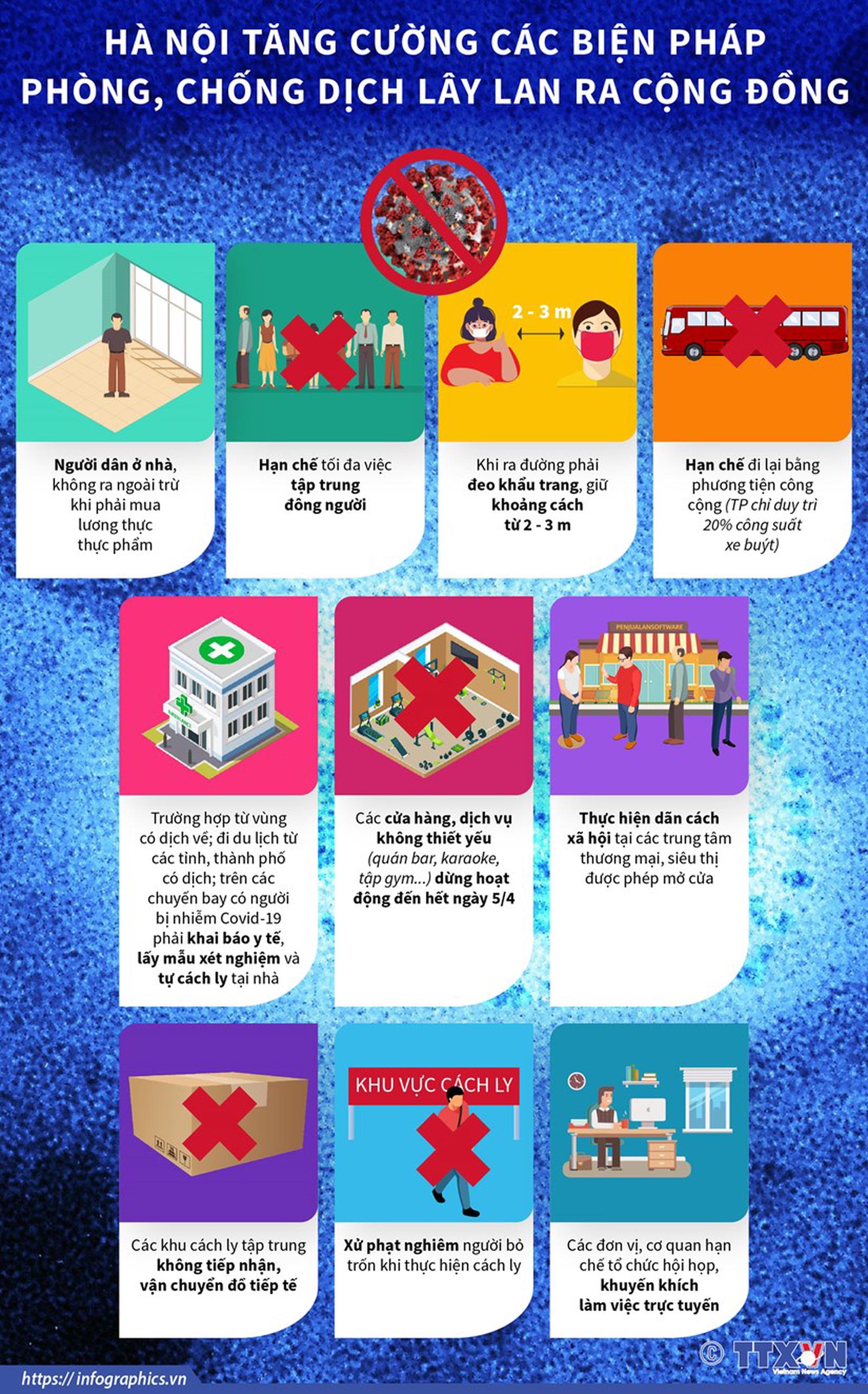 Hà Nội đang áp dụng nhiều biện pháp quyết liệt để ngăn chặn sự bùng phát của dịch COVID-19, như khuyến cáo người dân không đi ra ngoài, hạn chế đi lại bằng phương tiện công cộng...