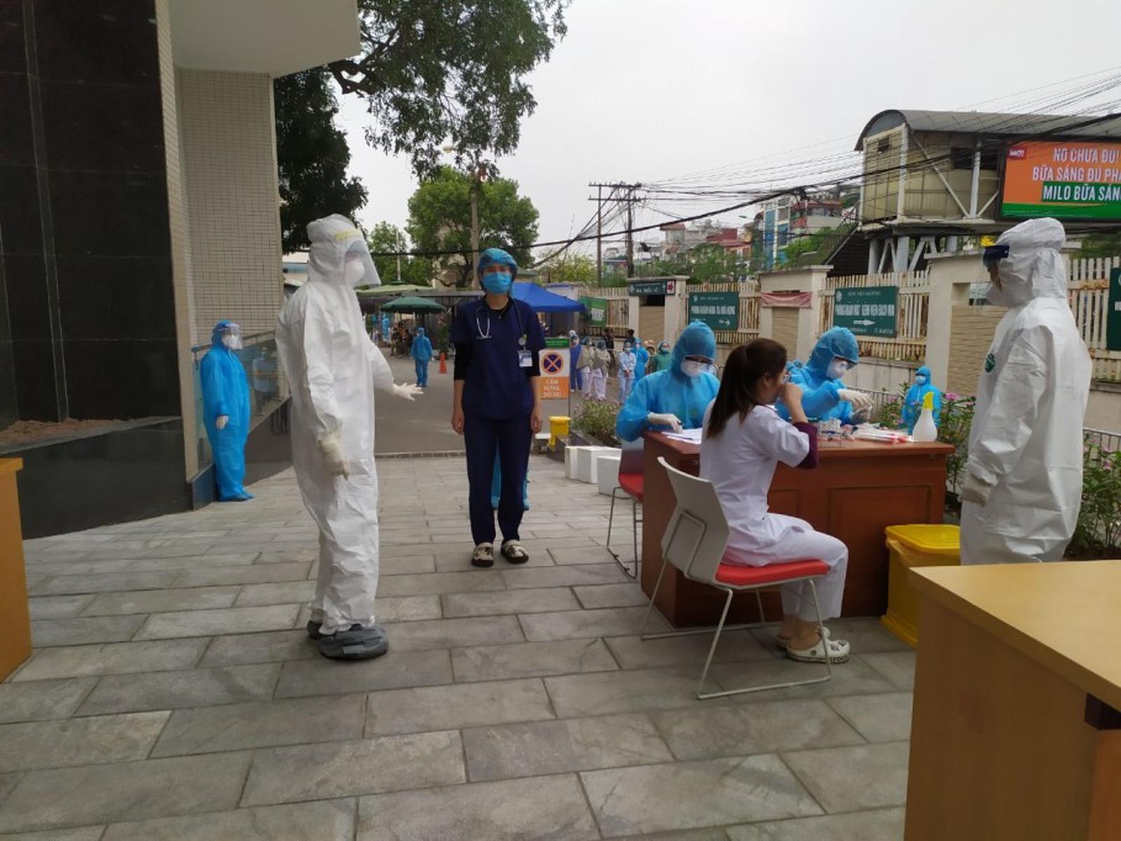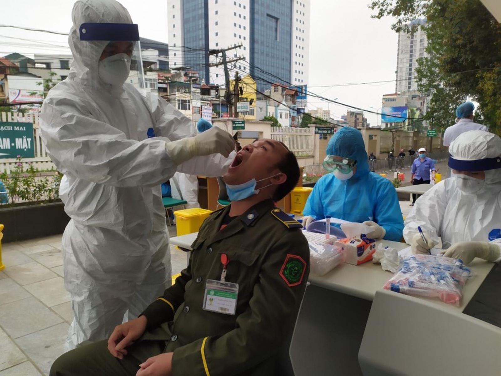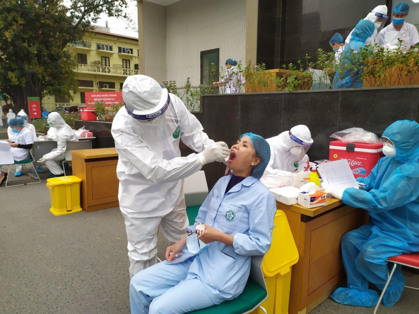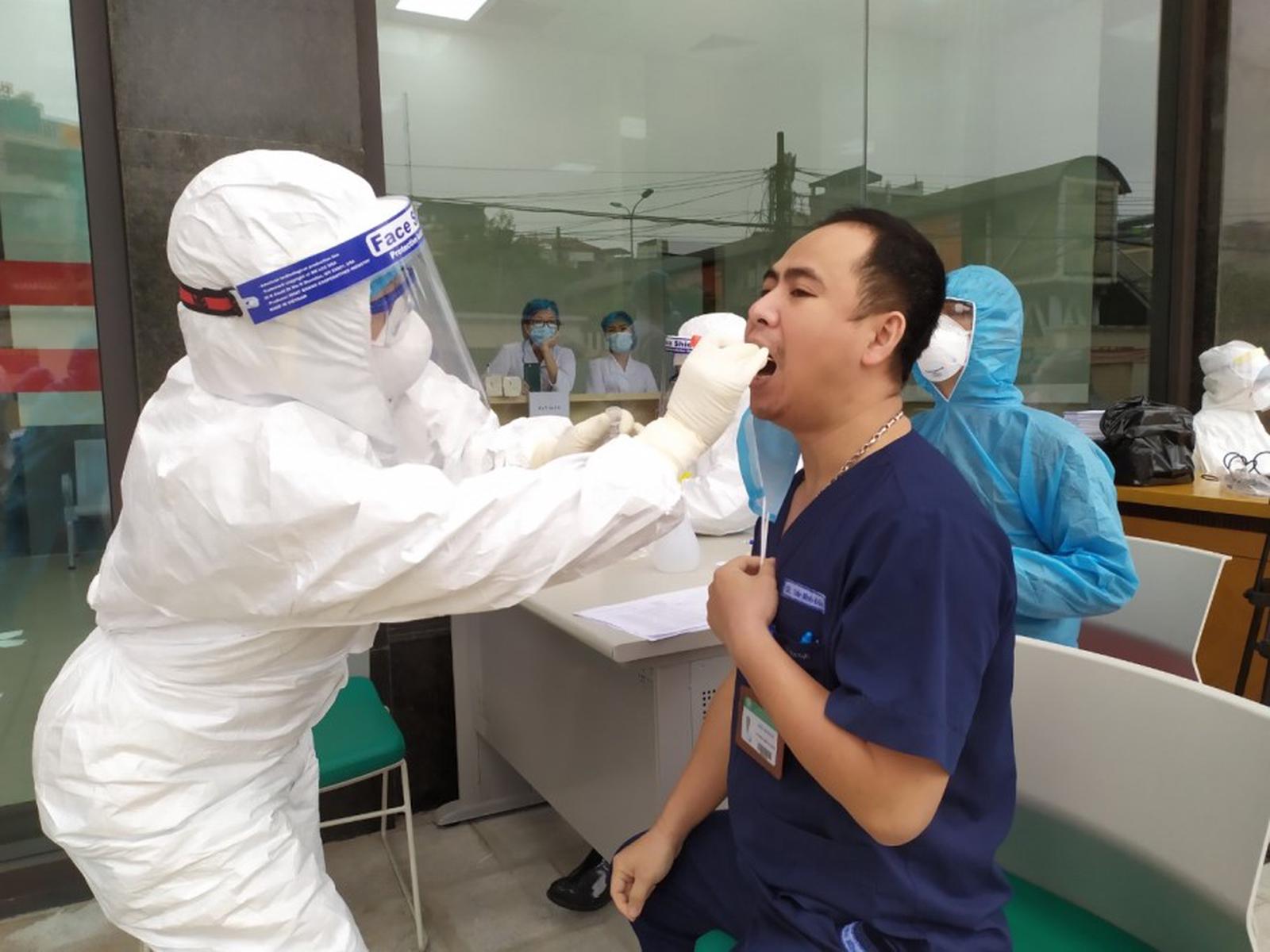 Các cán bộ, nhân viên Bệnh viện Bạch Mai được Trung tâm Kiểm soát bệnh tật TP Hà Nội tổ chức lấy mẫu xét nghiệm dịch bệnh Covid-19 lần 2