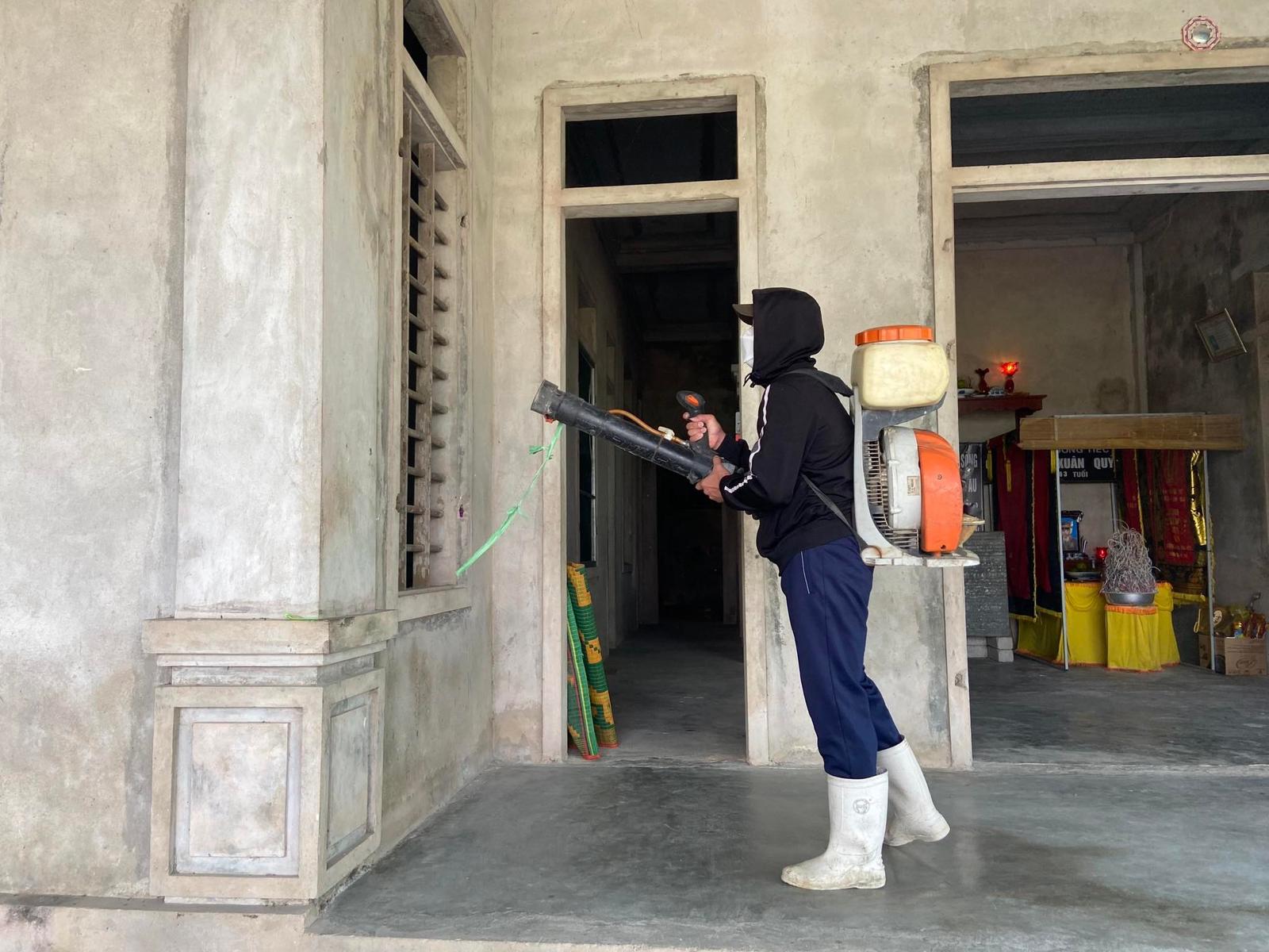 Ngành Y tế Hà Tĩnh hỗ trợ phương tiện, hóa chất và chuyên môn kỹ thuật để xử lý môi trường nhằm tiêu diệt côn trùng. Ảnh: Hải Yến