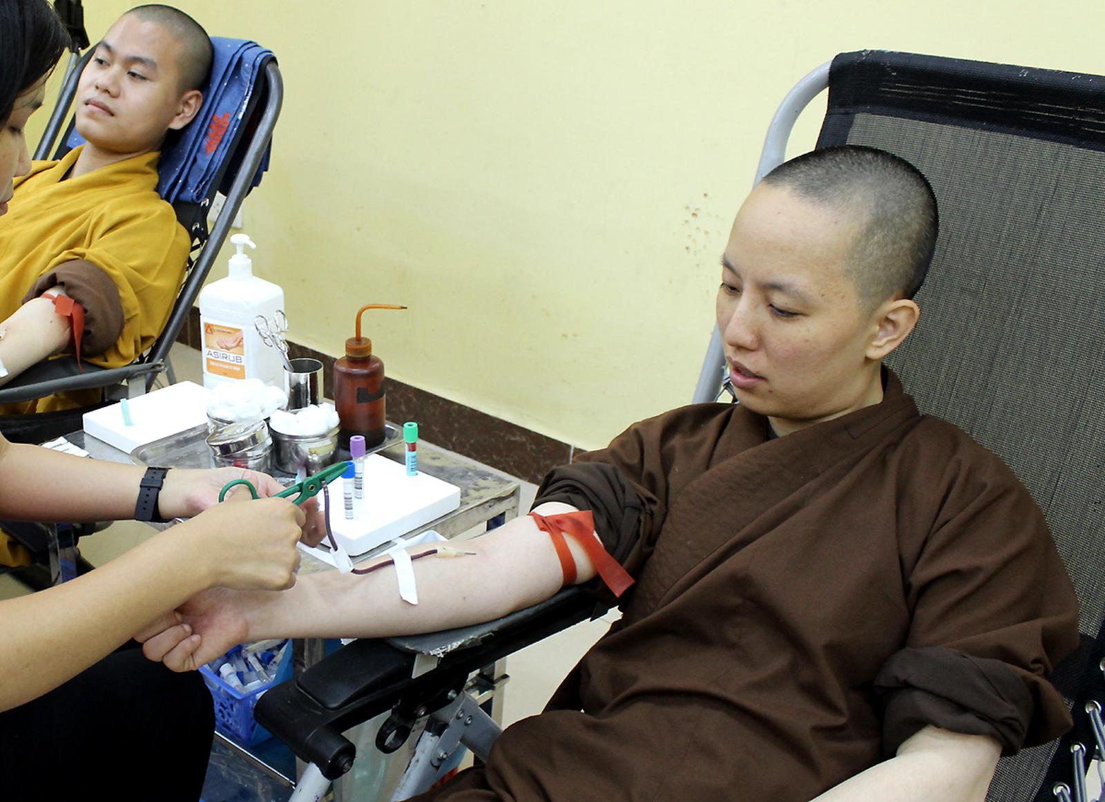 Phong trào "Hiến máu cứu người - hành Bồ tát đạo" được nhiều tăng, ni hưởng ứng tích cực. Ảnh: T.V