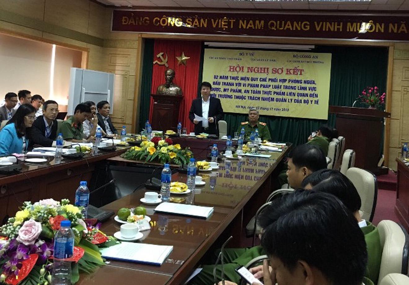(Thanh tra) - Ngày 15/11/2018, tại Bộ Y tế, Cục An toàn thực phẩm (ATTP) phối hợp với Cục Quản lý Dược và Cục Cảnh sát phòng chống tội phạm về môi trường (C05), Bộ Công an tổ chức hội nghị sơ kết 2 năm thực hiện Quy chế phối hợp.