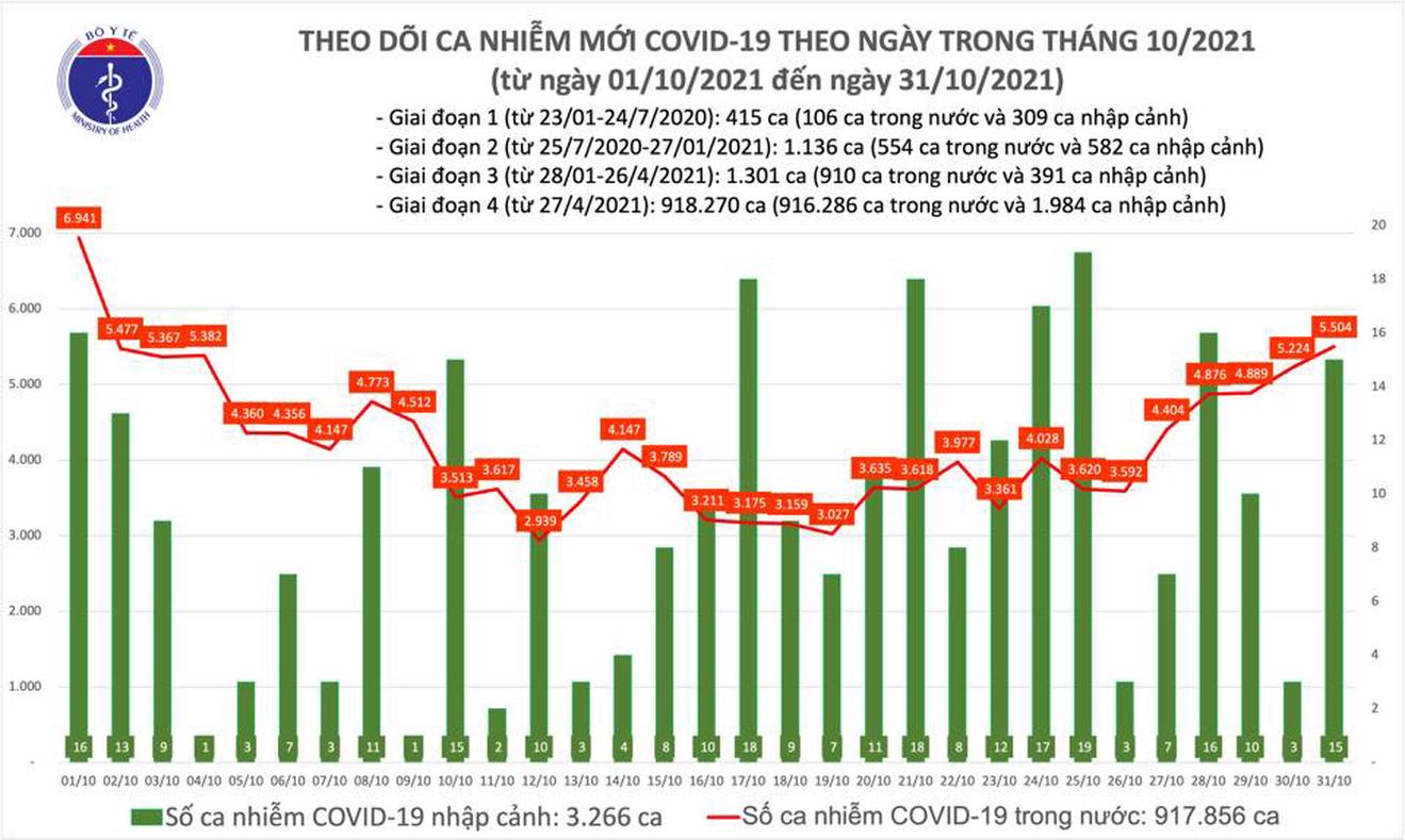 Ngày 31/10, cả nước ghi nhận 5.519 ca nhiễm COVID-19 mới