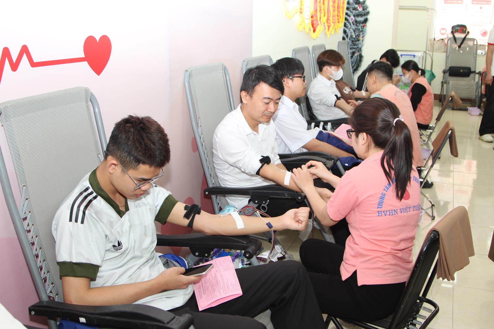 Các tình nguyện viên tham gia hiến máu tại chương trình. Ảnh: TT