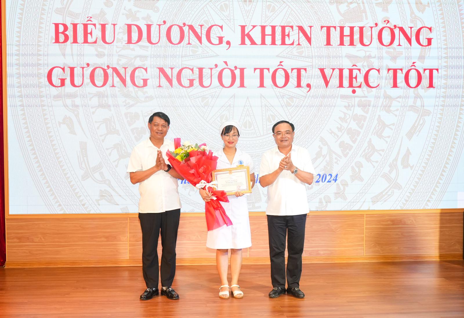 Tại lễ biểu dương, khen thưởng, gương người tốt việc tốt, Bí thư Thành ủy Lê Tiến Châu chúc mừng và biểu dương chị Nguyễn Thị Thảo với việc làm cao cả của một người điều dưỡng, xuất phát từ trái tim của một người mẹ, chị đã cứu sống em bé 7 ngày tuổi.