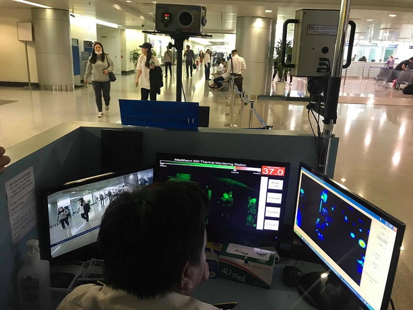 Đo thân nhiệt ở sân bay Tân Sơn Nhất. Ảnh: P.N