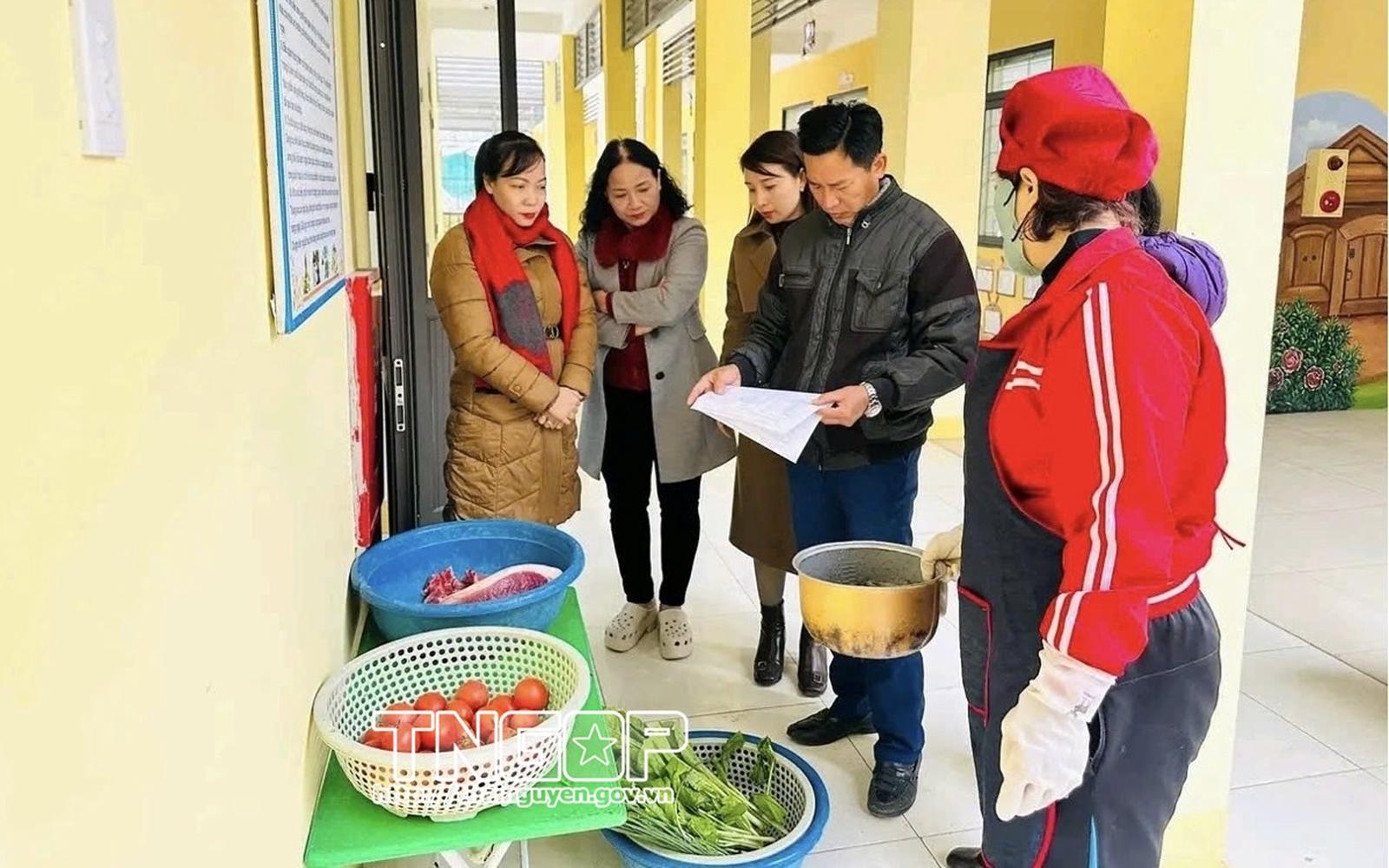 Ban đại diện cha mẹ học sinh kiểm tra đột xuất bếp ăn bán trú của trường hồi tháng 1/2026. Ảnh: Cổng TTĐT tỉnh Thái Nguyên
