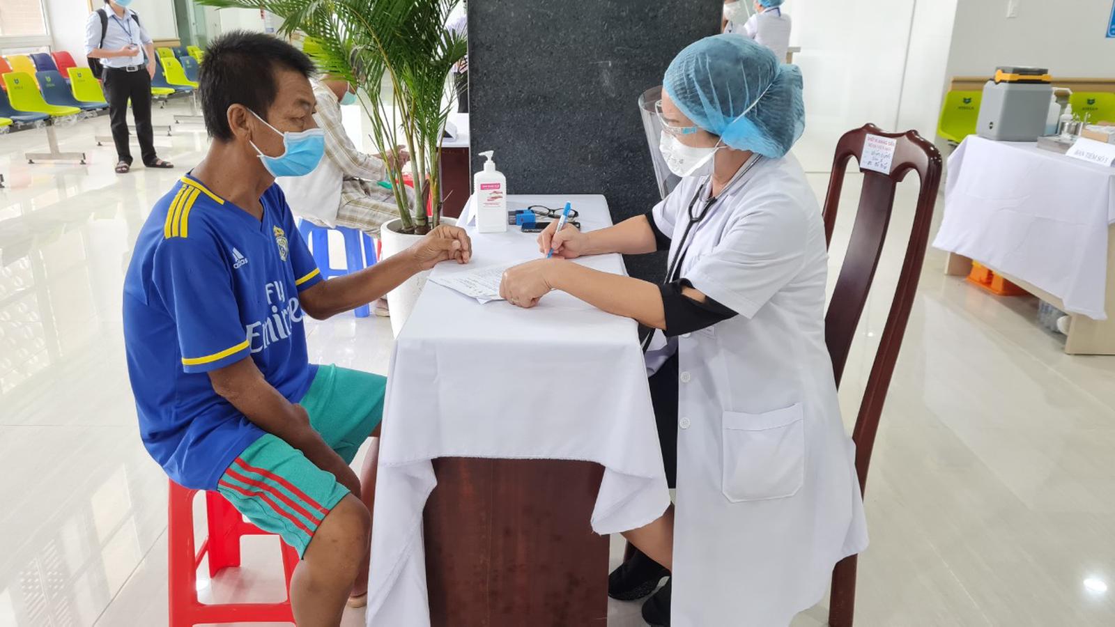 Một bệnh nhân suy thận mãn tính chuẩn bị được tiêm vắc xin chống Covid-19 tại Kiên Giang. Ảnh: L.H