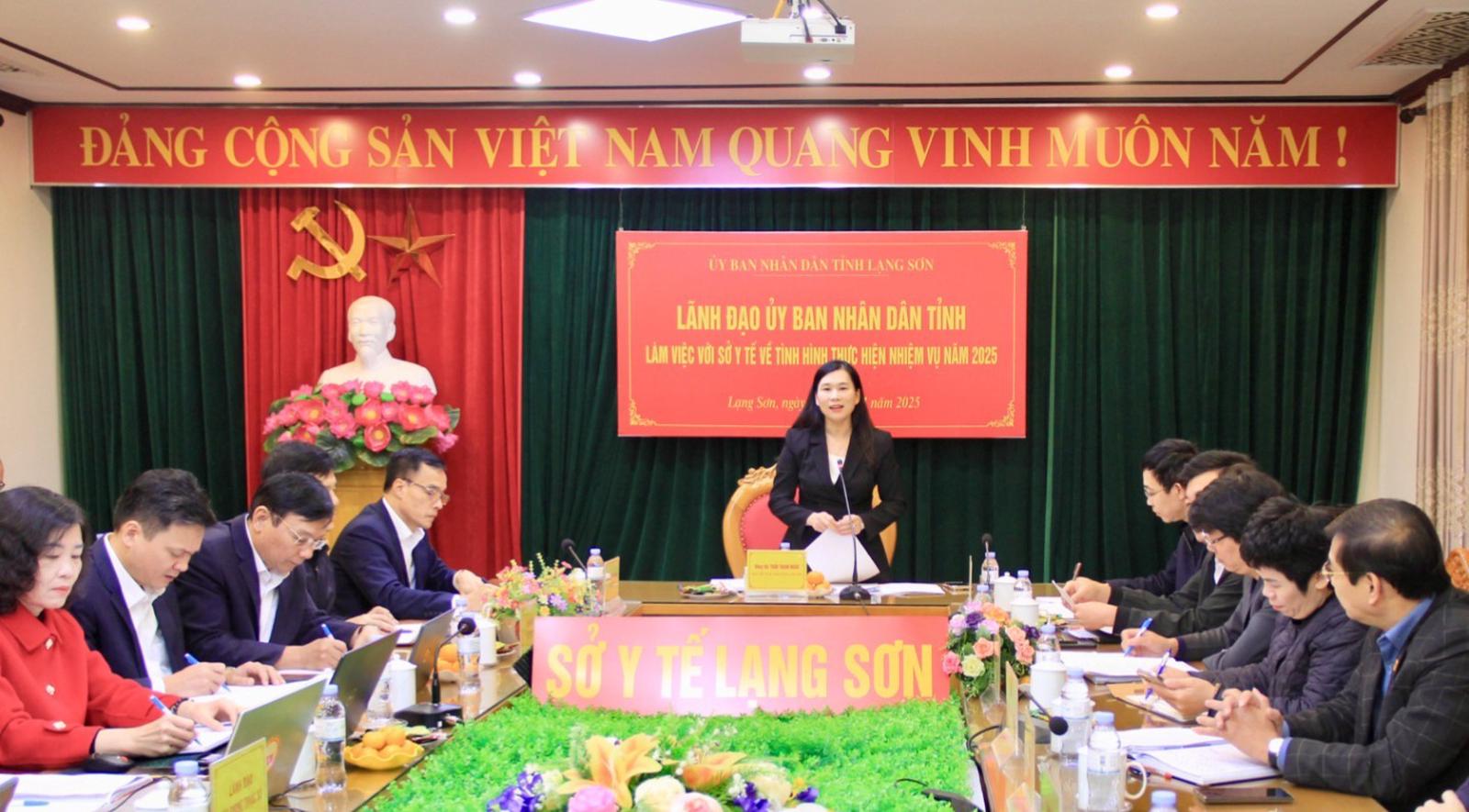 Ngày 4/11, phát biểu tại buổi làm việc với Sở Y tế Lạng Sơn, bà Trần Thanh Nhàn, Phó Chủ tịch UBND tỉnh yêu cầu Sở Y tế tiếp tục phát huy tinh thần chủ động, siết chặt kỷ cương, tăng tốc giải ngân, hoàn thành toàn diện các nhiệm vụ còn lại trong năm 2025.