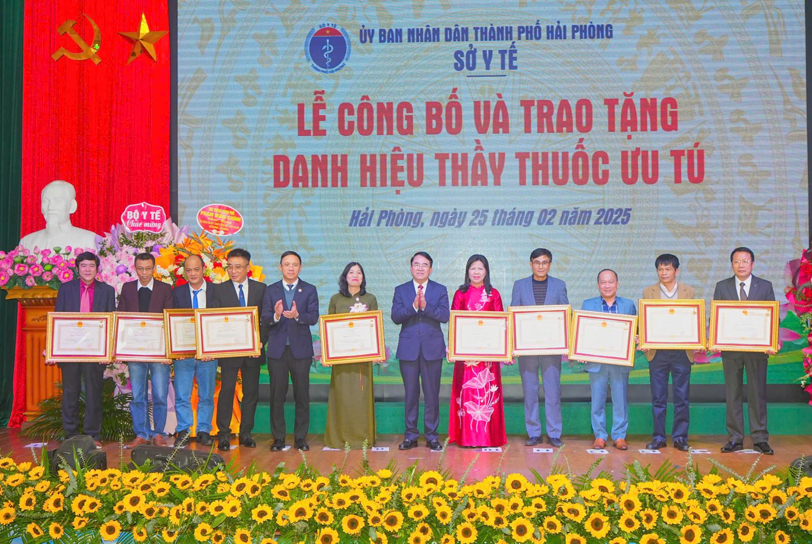 Lãnh đạo thành phố trao tặng danh hiệu “Thầy thuốc ưu tú” cho 10 cá nhân. Ảnh: TT
