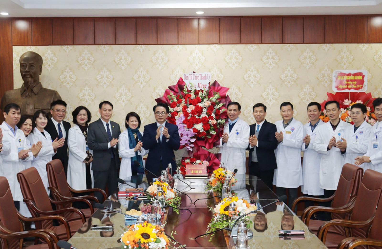 Trưởng Ban Tổ chức Thành ủy Lê Trí Vũ, Trưởng Ban Bảo vệ, chăm sóc sức khỏe cán bộ thành phố Hải Phòng chúc mừng Bệnh viện Hữu nghị Việt Tiệp. Ảnh: TT