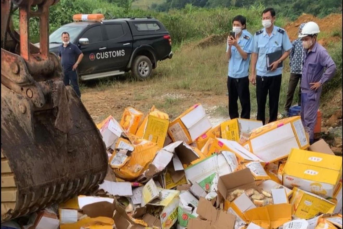 Hoạt động tiêu hủy thực phẩm vi phạm. Ảnh: Hải quan Khu vực VII