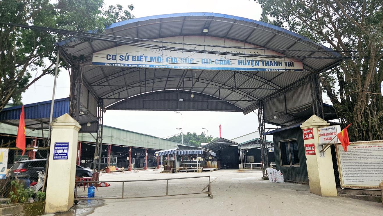 Mặc dù có rất nhiều ban ngành cùng quản lý đặt ngay tại cổng cơ sở giết mổ gia súc để kiểm soát nhưng hàng trăm con lợn nhiễm bệnh vẫn từ đây đi đến bữa ăn của các trường học. Ảnh: ND