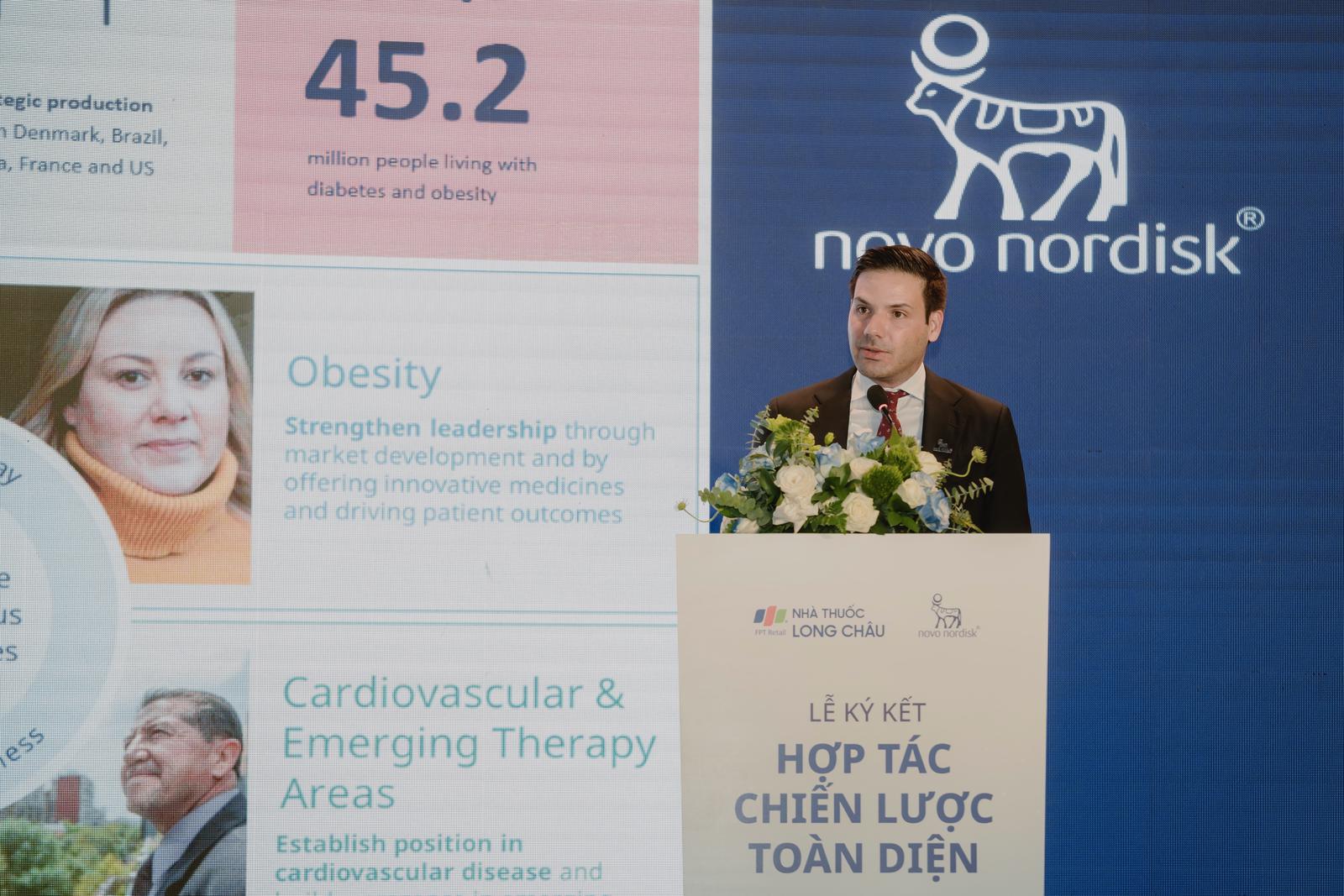 Đại diện Novo Nordisk Việt Nam chia sẻ trong buổi ký kết. Ảnh: FPTLC