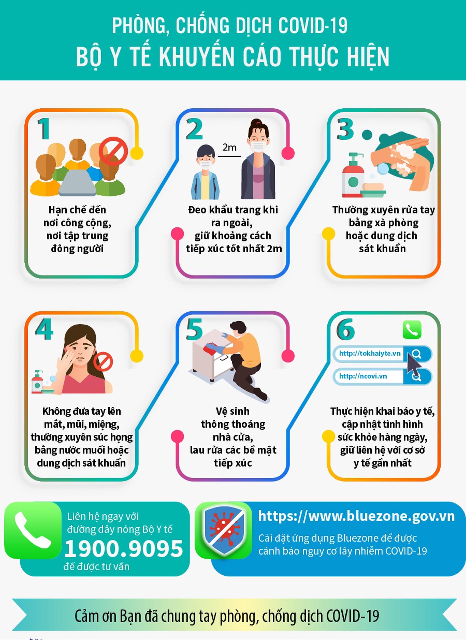 Đồng thời mỗi địa phương phải rà lại, kiểm tra lại tất cả các hoạt động, tăng cường kiểm tra, giám sát công tác phòng chống dịch bệnh theo 8 vấn đề sau đây: Rà soát thực hiện các quy định chống dịch; Tăng cường năng lực xét nghiệm; Thực hiện khai báo tại các cơ sở y tế; Bảo đảm bệnh viện an toàn; Bảo đảm an toàn cho nhân viên y tế; Tập huấn phòng chống dịch cho nhân viên y tế; Xử lý các trường hợp người Việt Nam xuất cảnh nước ngoài có kết quả dương tính; Chủ động mua sắm vật tư chống dịch, tuân thủ đúng quy định.
