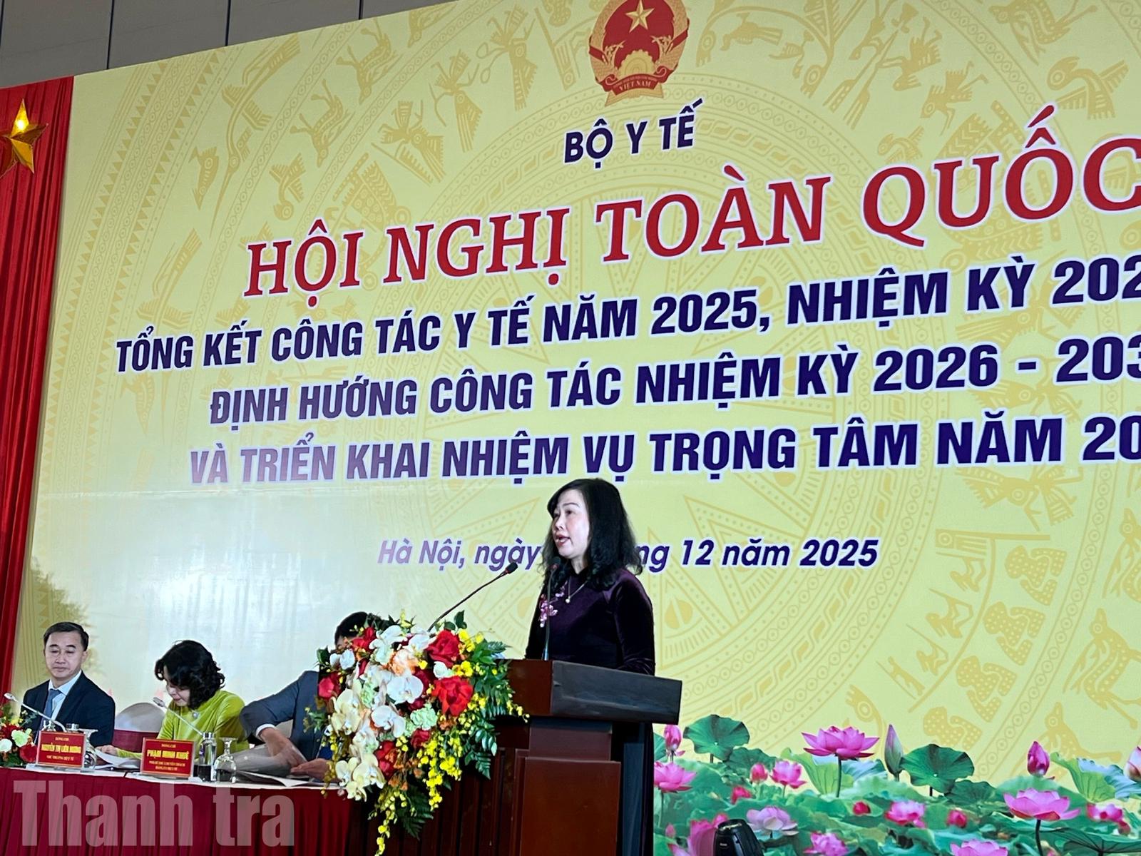 Phát biểu tại hội nghị, Bộ trưởng Bộ Y tế Đào Hồng Lan đã chia sẻ về những kết quả đạt được. Trong bối cảnh tình hình thế giới có nhiều biến động và hậu quả từ thiên tai, dịch bệnh, ngành Y tế đã nỗ lực hoàn thành 3/3 chỉ tiêu kinh tế - xã hội chủ yếu được Quốc hội giao trong năm 2025.