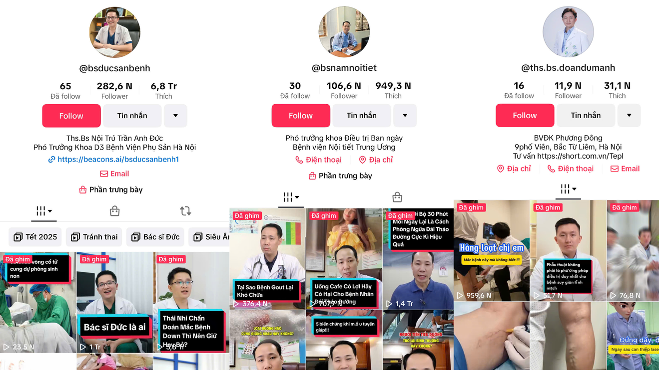 Ngoài ra, không ít bác sĩ thực thụ vì muốn thu hút người xem đã cắt giảm độ chính xác của thông tin, giật tít câu view hoặc thậm chí vô tình lan truyền những quan niệm sai lầm. Một số bác sĩ còn tận dụng sự nổi tiếng để quảng bá các sản phẩm không rõ nguồn gốc, từ thuốc giảm cân, kem trị mụn đến thực phẩm chức năng, khiến người xem nhầm tưởng rằng những sản phẩm đó thực sự hiệu quả.