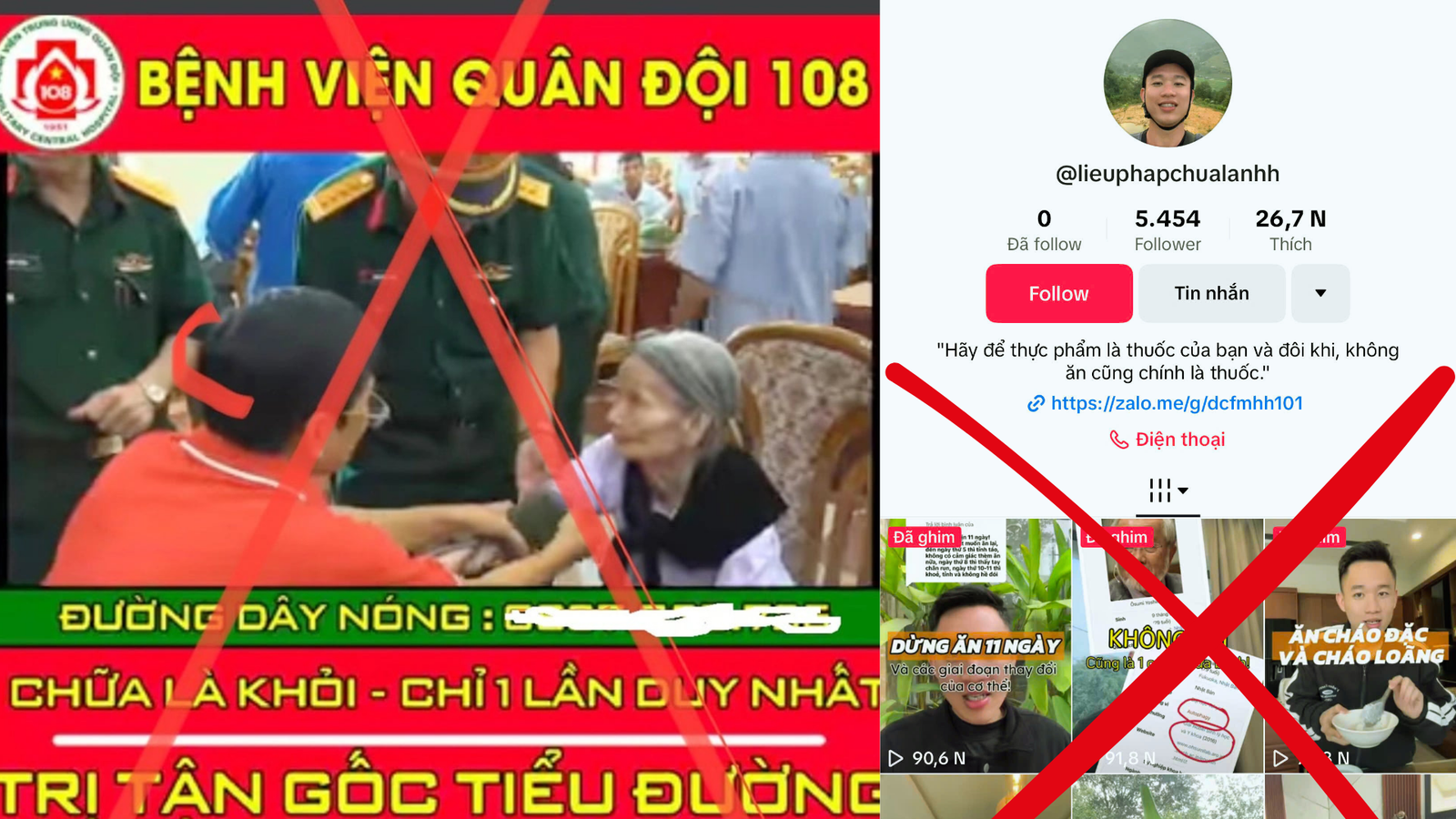 Giả mạo bác sĩ bệnh viện để bán thuốc và kênh tiktok lan truyền những thông tin sai sự thật, chưa được kiểm chứng. Ảnh: NN