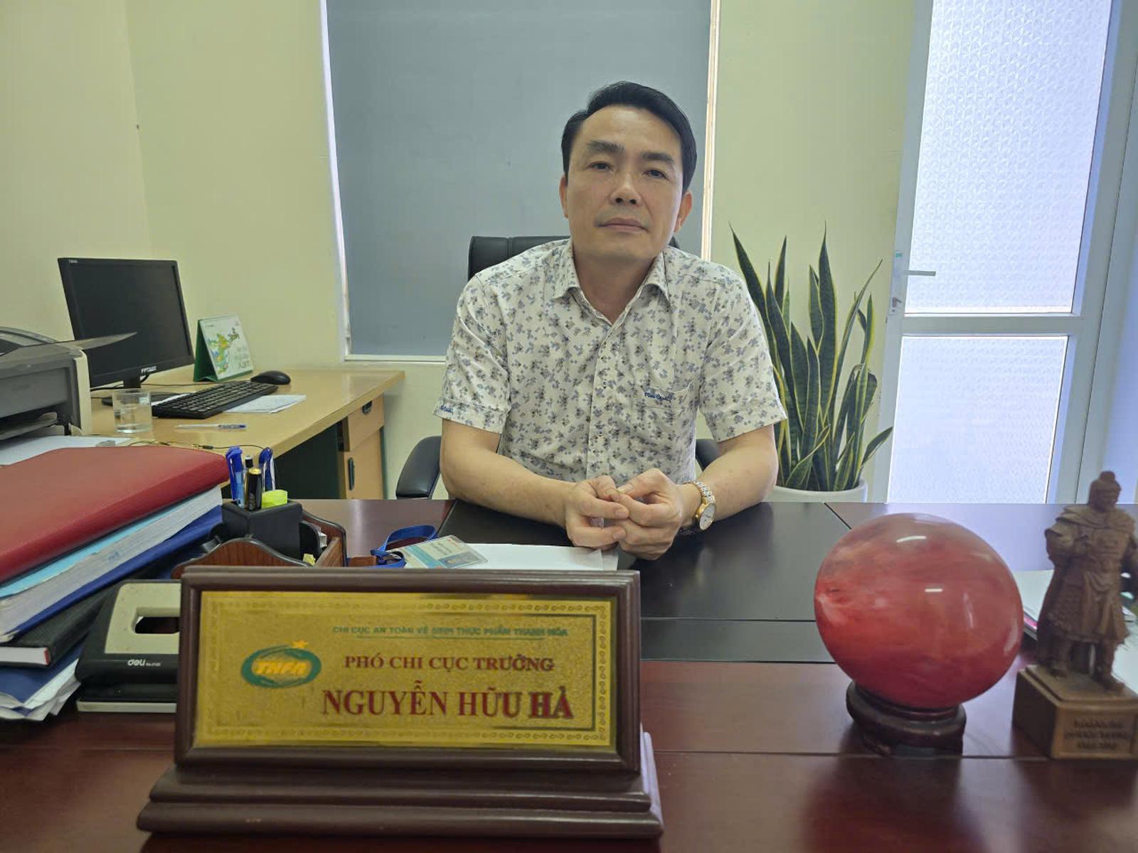 Ông Nguyễn Hữu Hà, Phó Chi cục Vệ sinh An toàn thực phẩm tỉnh Thanh Hóa trao đổi với phóng viên Báo Thanh tra. Ảnh: Văn Thanh